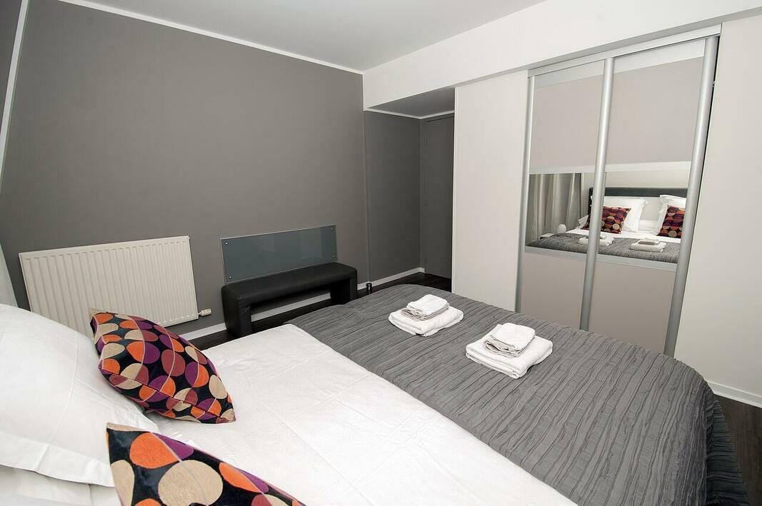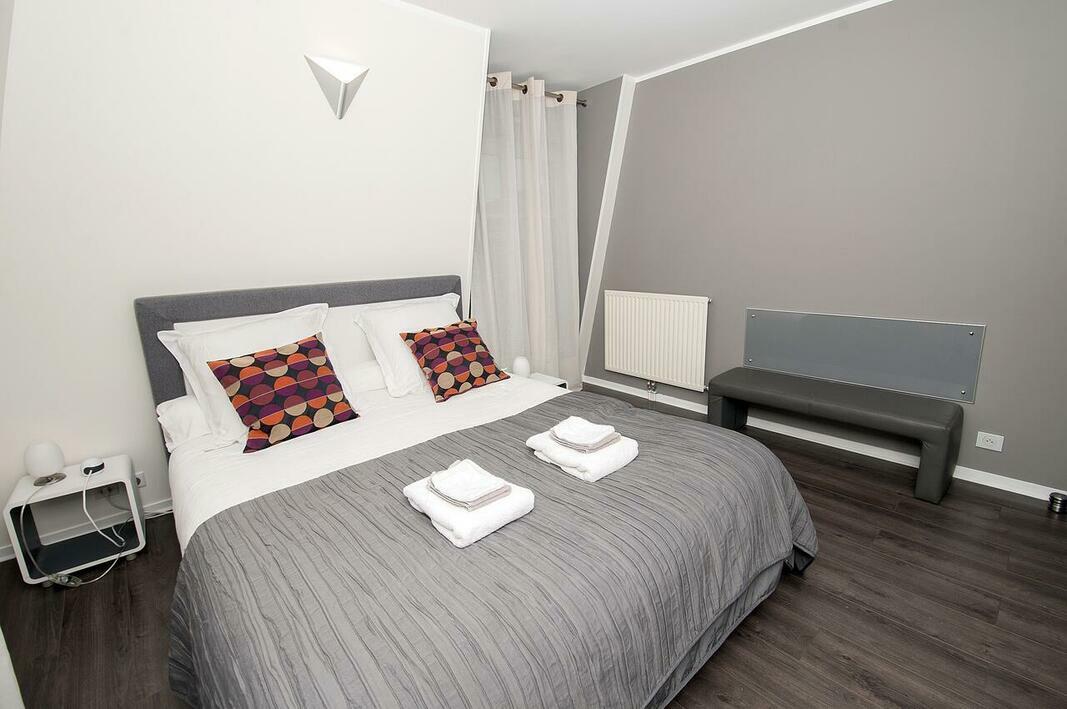 The apartment is composed of 2 separated bedrooms, the mobile air conditioning is only sufficient for two bedrooms, a fully equipped kitchen with a dishwasher and an oven, and 1 bathroom. A flat-screen TV with cable channels and a Blu-ray player are available.