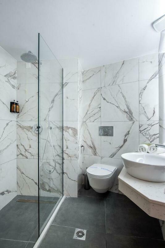 Rooms are equipped with air conditioning and central heating. Guests can relax and enjoy the sea views from the balcony or private terrace of some rooms. Guests are sure to get a good night's sleep in the double bed. Children's beds can be requested for younger guests. A safe, a minibar and a desk are also available. For guests' convenience, units include a refrigerator, a mini fridge and a tea/coffee station. An ironing set is provided for guests' convenience. Other features include a telephone, a flatscreen television, an alarm clock and WiFi (no extra charge). Slippers are included. A hairdryer and bathrobes are available in the bathrooms, which are equipped with a shower and a bathtub. Cosmetic products and a selection of towels provide additional comfort in the bathrooms. The hotel has family rooms and non-smoking rooms.