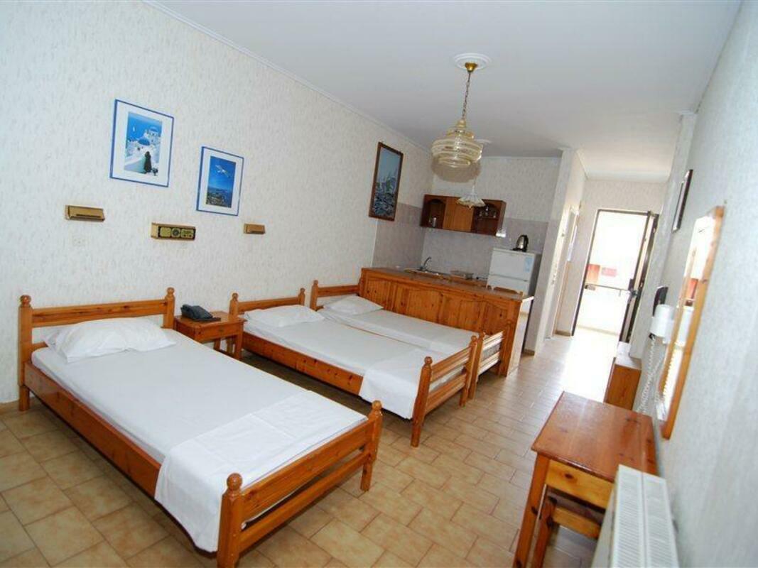 This friendly accommodation is nestled on the beautiful island of Kos, close to the beach and at only 1km distance from the town centre, where travellers can find a host of restaurants, shops, bars and other entertainment venues. Agios Fokas beach, famous for its blue waters and beautiful views, is situated at only a 15-minute drive away and the archaeological site of Asklipeion is about 2.5 km distance. The establishment offers spacious and luminous studios ideal for groups and families. They are all equipped with functional wooden furniture, a private bathroom and a kitchen area featuring a mini fridge, an electric kettle and cooking rings. Travellers may wake up every morning to a delicious continental and English breakfast, which is served by the hotel. During the day, guests can laze in a sun lounger by the sparkling outdoor pool while enjoying a refreshing drink.