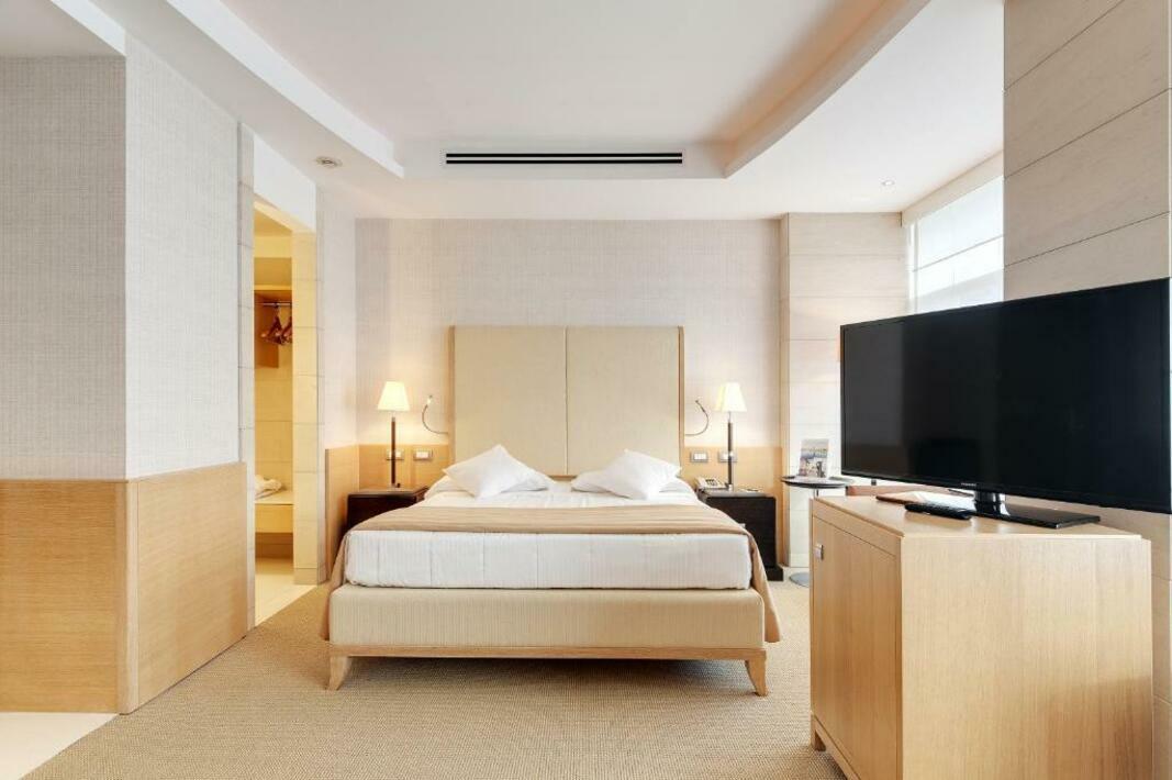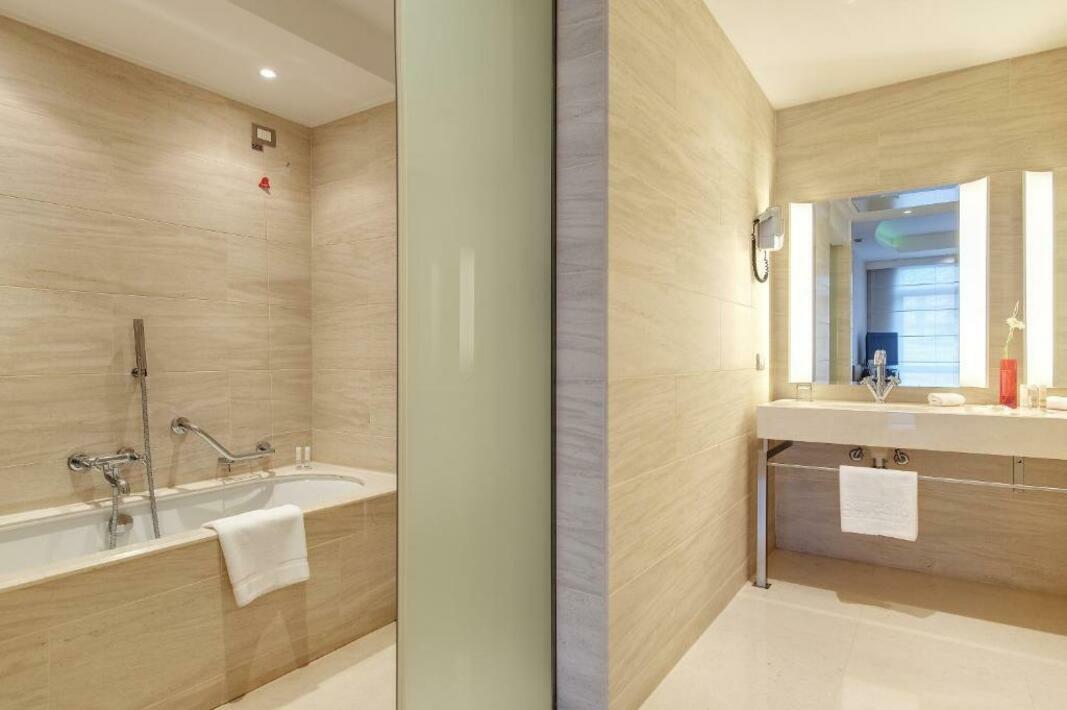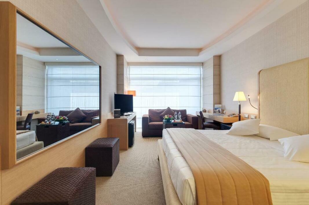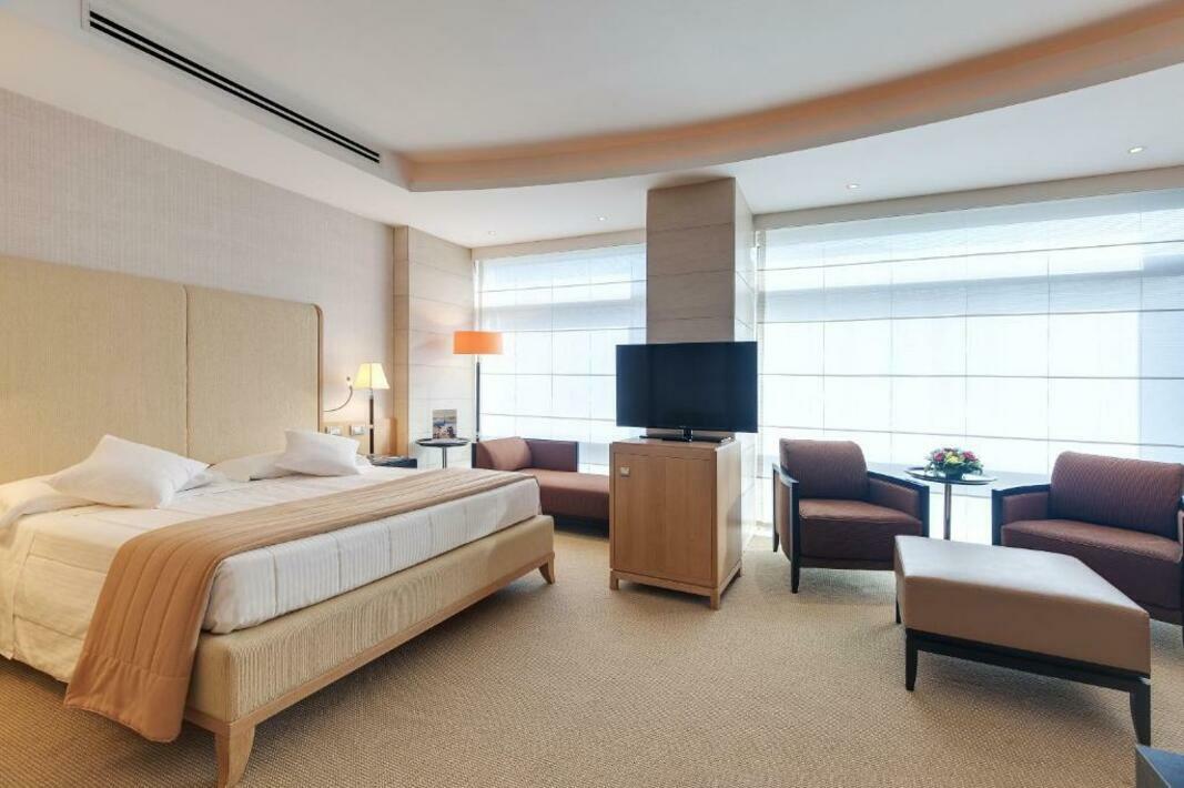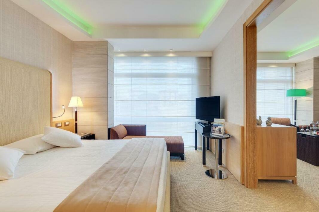 Rooms are equipped with air conditioning (no extra charge) and individually adjustable heating. A balcony is among the standard features of some rooms. All rooms are carpeted and include a double bed and a sofa bed. Separate bedrooms can be booked. Children's beds can be provided at no extra charge upon request. There is also a safe and a desk or, for an additional fee, a minibar. Guests will also find a mini fridge included among the standard features. A telephone, a flatscreen television with satellite/cable channels and WiFi (no extra charge) are provided as well. Guests can also make use of the cleaning service on departure. Bathrooms are equipped with a shower, a bathtub and a bidet. A hairdryer, a vanity mirror and a telephone are available for daily use. For extra comfort in the bathrooms, guests are offered cosmetic products. Bathrooms with wheelchair access can also be booked. The hotel has non-smoking rooms.