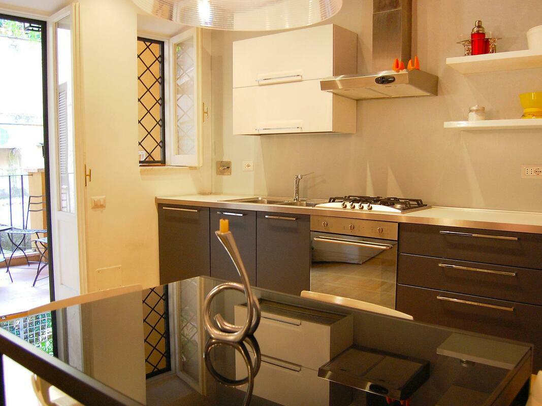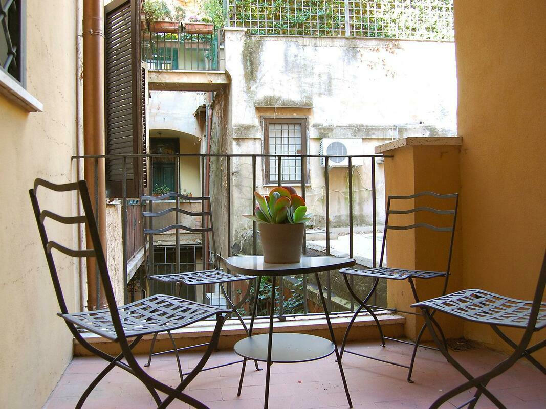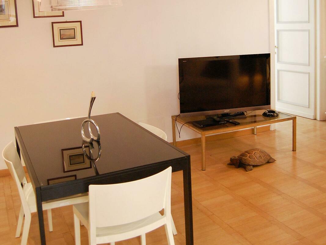 Roma: Historical apartment block "Fori Imperiali Elegant", 4 storeys, from the 19th century. In the centre of Roma, in the district Fori Imperiali, in the heart of the city. In the house: lift. Shop 50 m, grocery 100 m, supermarket 200 m, restaurant, bar 50 m, bus stop "Cavour" 450 m, railway station "Termini" 1 km, underground station "Cavour" 450 m. Nearby attractions: Colosseo 1 km, Fori Imperiali 1 km, Piazza Navona 2 km, Fontana di Trevi 1 km, Pantheon 1.5 km, Basilica di San Pietro 3 km. Please note: car not advisable. 3-room apartment 120 m2 on 1st floor. Practical and cosy furnishings: large living/dining room with 1 sofabed and TV. Exit to the terrace. 1 double bedroom with shower/bidet/WC. 1 room with 2 beds and shower/bidet/WC. Kitchenette (4 hot plates, oven, dishwasher). Heating, air-conditioning. Parquet floors. Small terrace. Facilities: washing machine, hair dryer. Internet (WiFi, free). Please note: fridge without freezer, no parking. Mandatory Fees paid on arrival: Breakage deposit by credit card Visa / Mastercard - 250.00 EUR fixed price Final cleaning - 20.00 EUR per person Local tax up to max 10 days - 3.50 EUR per person/day