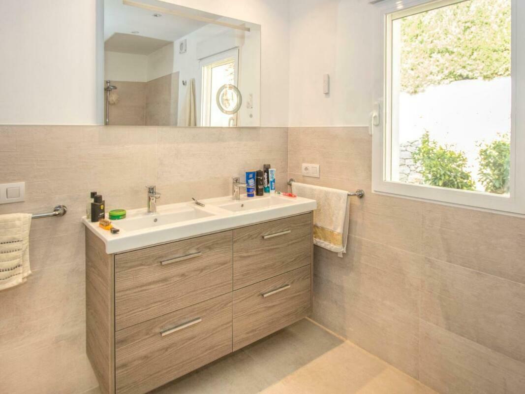 The spacious villa has 3 bedrooms, a TV with satellite channels, a fully equipped kitchen with a dishwasher and an oven, a washing machine, and 3 bathrooms with a shower.