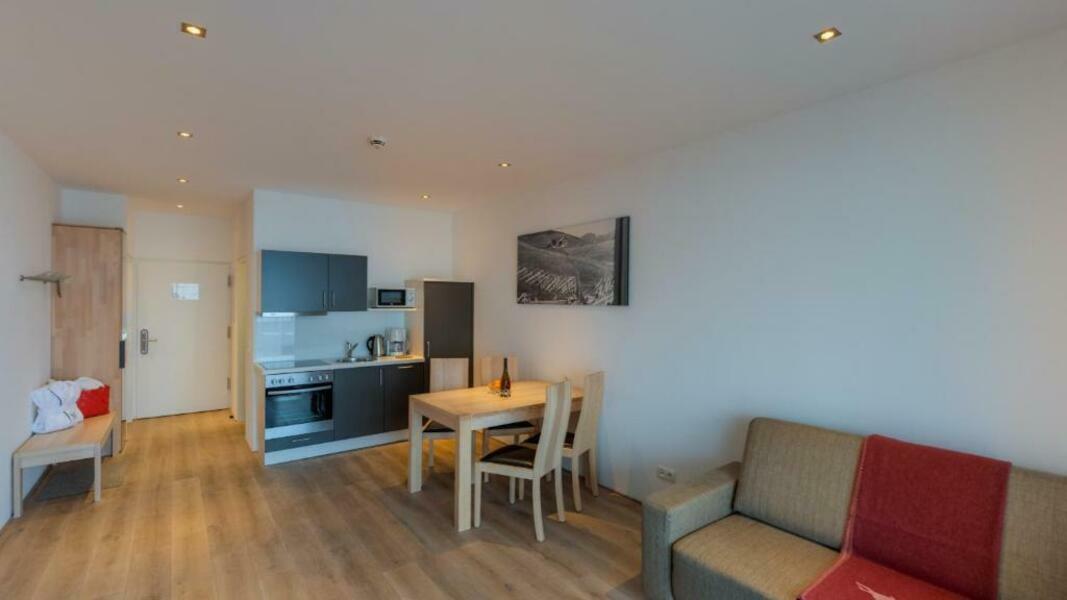 Nel complesso sono disponibili camere con soggiorno, cucina e bagno. Un balcone fa parte dell’assetto standard nella maggior parte delle camere e permette di rilassarsi un momento all’aria aperta senza dover uscire. Le camere sono dotate di un letto a due piazze e un divano letto. Vi è la possibilità di prenotare camere da letto separate. È possibile richiedere letti aggiuntivi e lettini per neonati. È inoltre disponibile una cassetta di sicurezza. A garantire un soggiorno confortevole vi sono un frigorifero, un fornello, un forno a microonde, un set per la preparazione di tè/caffè e una lavastoviglie. La dotazione prevede ancora accesso a Internet, telefono, televisore, radio e WiFi (senza sovrapprezzo). Tra i comfort delle camere anche un paio di pantofole. Nella stanza da bagno è presente una doccia. Tra gli accessori figurano asciugacapelli, specchio cosmetico e accappatoi.