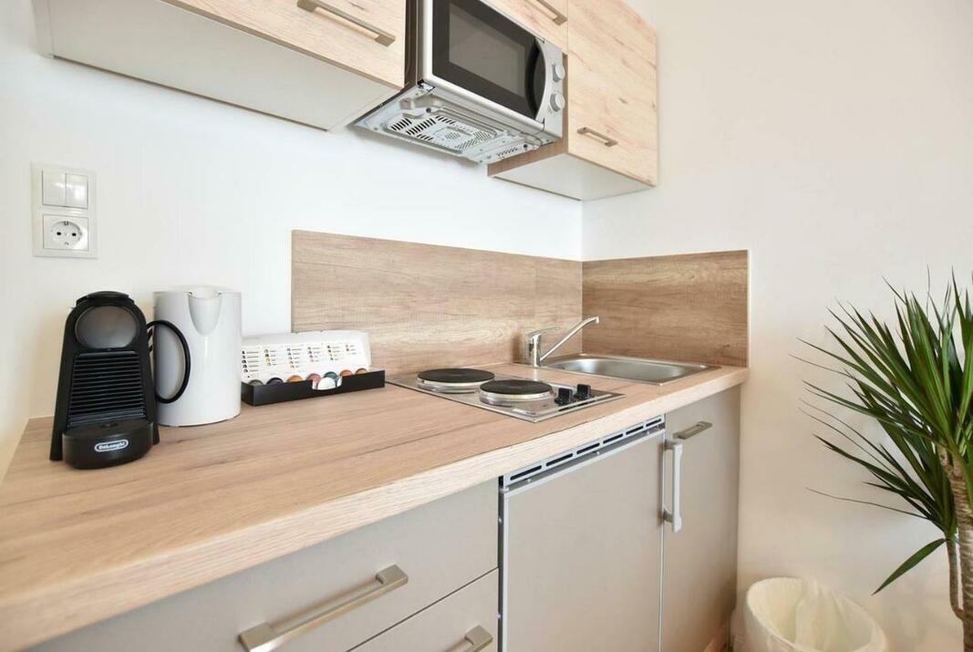 This apartment is equipped with a living room and a fully equipped kitchen.