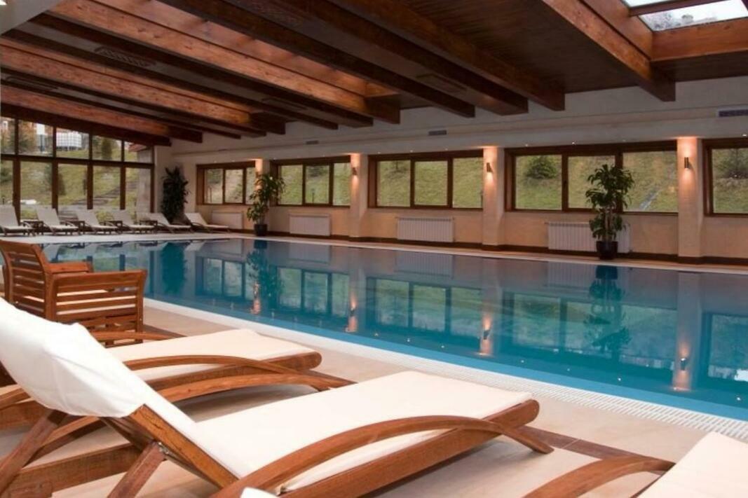 The apartment offers a terrace. Guests can swim in the indoor pool, relax in the garden, or go hiking or skiing.