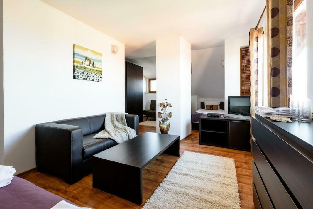 Central heating ensures that rooms maintain comfortable temperatures. The rooms have a queen-size bed and a sofa bed. Extra beds can be requested. A safe and a minibar are also available. A trouser press is provided for guests' convenience. A telephone, satellite television and WiFi are provided as well. Bathrooms are equipped with a shower. Bathrooms with wheelchair access can also be booked. The hotel has family rooms and non-smoking rooms.