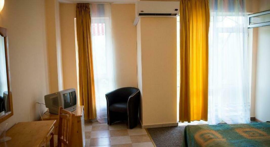 This hotel is located in the northern part of the resort, 100 m from public transport links, some 450 m from Aquapolis, around 500 m from the beach, shops, restaurants and the Golden Sands natural park. It lies some 600 m away from the centre of the Golden Sands resort and approximately 700 m from nightspots and bars. The Aladzha Monastery is about 2 km away, and the hotel enjoys a green setting on a hill, close to the road from Varna (17 km) to Albena, giving guests convenient access to both places by bus. It is only some 18 km to Varna Airport.Facilities