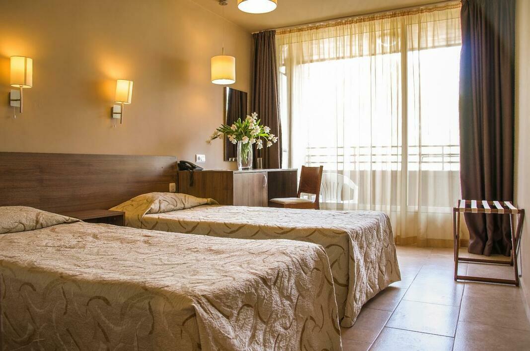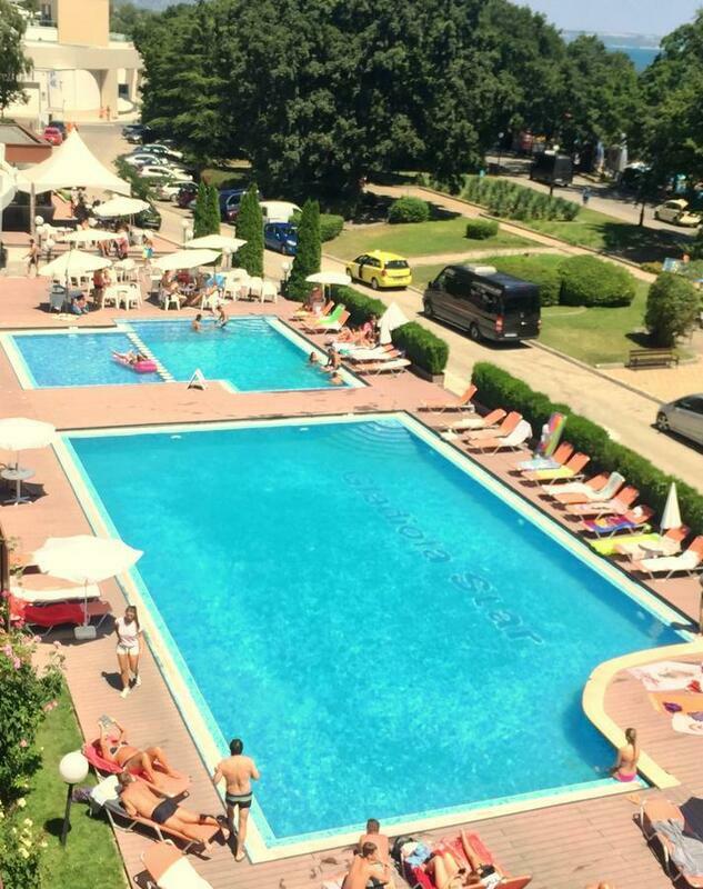 The hotel is located in first row of the resort of Golden Sands, only 60 metres from the sandy beach and 100 metres from the resort centre. The closest bus station is about 500 metres away. The hotel is approximately 20 km from the next big city of Varna and 30 km from Varna Airport.