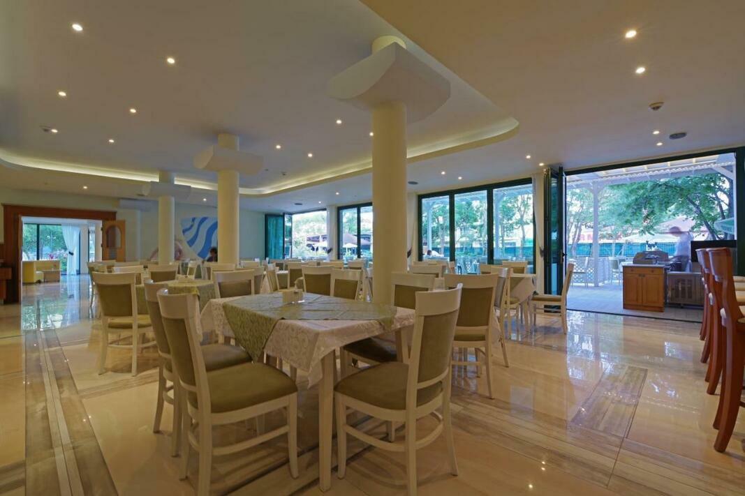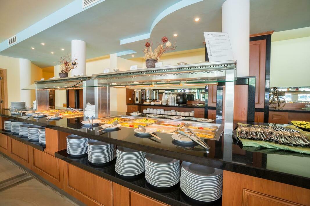 The hotel includes a restaurant and a bar. The hotel offers a wide range of catering options. Half board and all-inclusive can be booked. All-inclusive holidaymakers enjoy special extras like snacks, in addition to a selection of alcoholic and non-alcoholic beverages. A delicious breakfast gives guests plenty of energy for the day. At lunch and dinner, guests serve themselves at the generous buffet. Special meals, including vegetarian dishes, are also available. The chefs prepare delicious specialities during the show cooking.