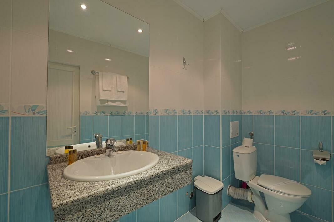 Air conditioning and central heating ensure that rooms maintain comfortable temperatures. Guests can enjoy the garden view from a balcony or terrace. All rooms are carpeted and include a double bed and a sofa bed. Separate bedrooms are available. Children's beds can be requested for younger guests. A minibar and a desk are also available. Guests will also find a refrigerator included among the standard features. A telephone, a TV and WiFi (no extra charge) provide all the essentials for a comfortable holiday. A shower, a bathtub and a whirlpool bath are included the bathrooms. For additional convenience, bathrooms also provide a hairdryer. For extra comfort in the bathrooms, guests are offered cosmetic products. The hotel has family rooms and non-smoking rooms.