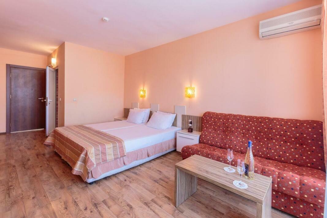 Air conditioning and central heating ensure that rooms maintain comfortable temperatures. Guests can enjoy the sea view from a balcony or terrace. Rooms have a queen-size bed or a sofa bed. Extra beds can be requested. A safe and a minibar are also available. A telephone, a TV and WiFi (no extra charge) provide all the essentials for a comfortable holiday. Bathrooms are equipped with a shower and a bathtub, as well as a hairdryer. The hotel has family rooms and non-smoking rooms.