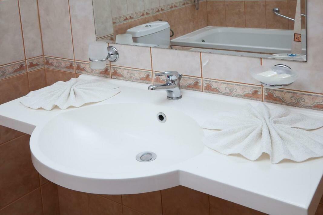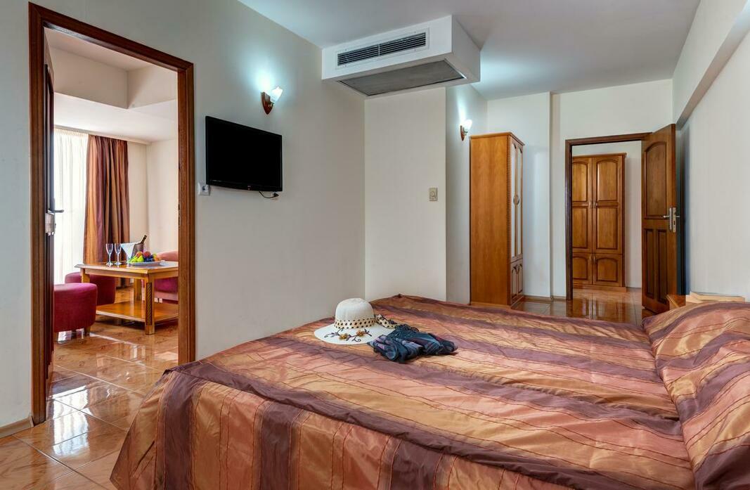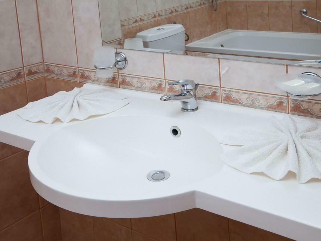 Rooms are equipped with air conditioning and central heating. In most units, guests can enjoy a view of the sea from a balcony or terrace. The rooms have a king-size bed and a sofa bed. Extra beds can be requested. A safe and a minibar are also available. A telephone, satellite television, a radio and WiFi (no extra charge) are provided as well. A hairdryer and a telephone are provided in the bathrooms, which include a shower and a bathtub. The hotel has family rooms and non-smoking rooms.