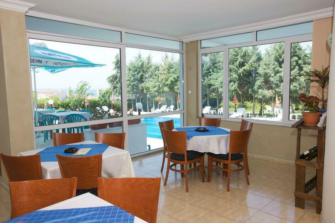 The dining area includes an à-la-carte restaurant and a bar. Half board can be booked. Breakfast and a set dinner menu are served every day.