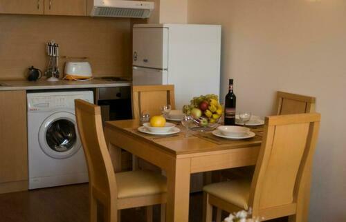 Air conditioning and central heating ensure that rooms maintain comfortable temperatures. Guests can enjoy the view of the pool from a balcony or terrace. The rooms have a double bed and a sofa bed. Children's beds can be requested for younger guests. All kitchenettes come with a refrigerator and a tea/coffee station. Other features include a telephone, a television with satellite/cable channels and WiFi (for a fee). Bathrooms are equipped with a shower. For additional comfort, guests are offered a selection of towels. The apartment hotel has family rooms and non-smoking rooms.