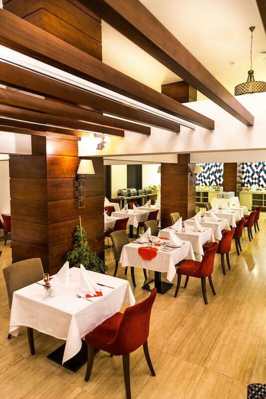 Dining facilities include a restaurant, a café and a bar. A generous breakfast buffet and lunch are served every day. Diet meals and children's meals can be prepared on request. The hotel also offers special catering options.