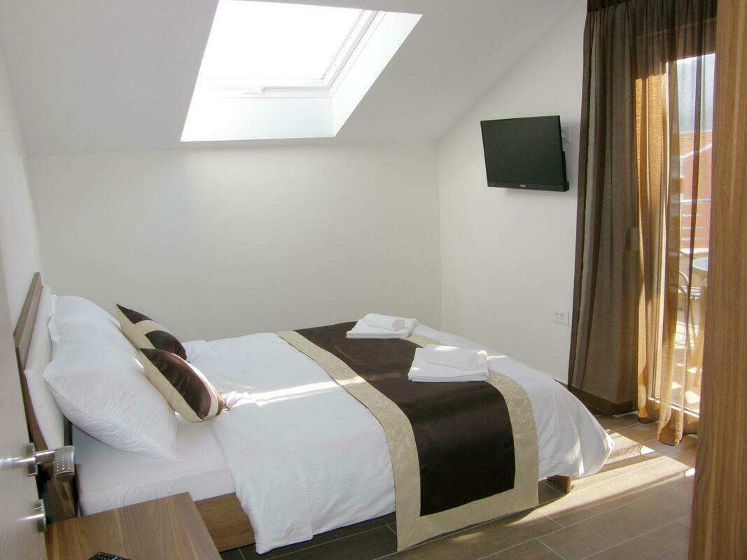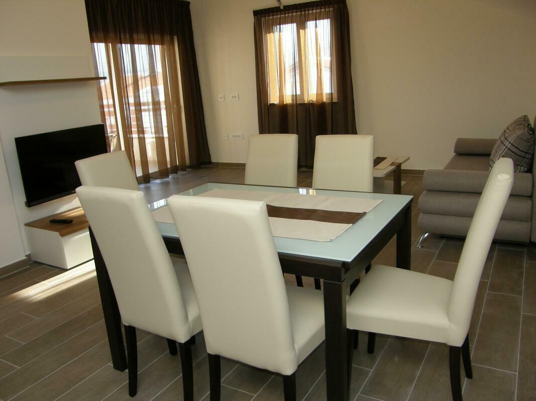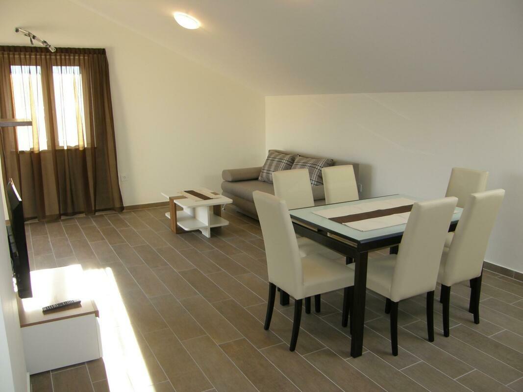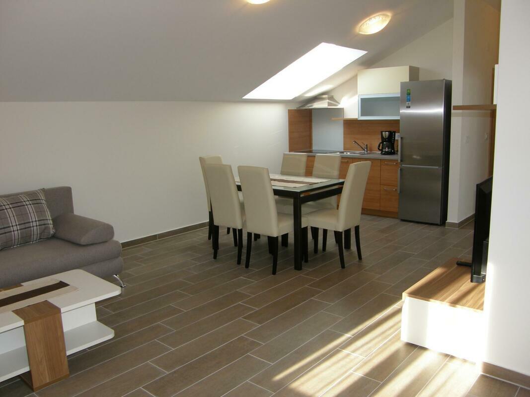 Small apartment house "SMOJVER". House Equipment: air conditioning. Access & Parking: parking by the house, private parking. Situation: sunny position. Facilities and distances: shop 350 m, supermarket 350 m, restaurant 350 m, pebble beach 350 m. 3-room apartment "Smojver A4 K2 br.6", for 4 people, 65 m2, on the top floor, modern furnishings. Living/dining room with satellite TV. Smoking allowed. Internet (Wireless LAN [WLAN]). 1 sofa bed. Sleeping room with 1 double bed. Sleeping room with 1 double bed. Open kitchen with 4 hot plates, dishwasher, fridge and deep freezer. Shower/WC and bidet. Balcony 10 m2, terrace furniture. Other equipment. Mandatory Fees paid on arrival: Local tax - 0.30 EUR per person/day enrollment / registration fee - 2.50 EUR per person