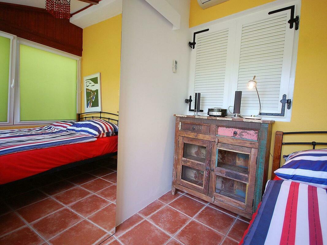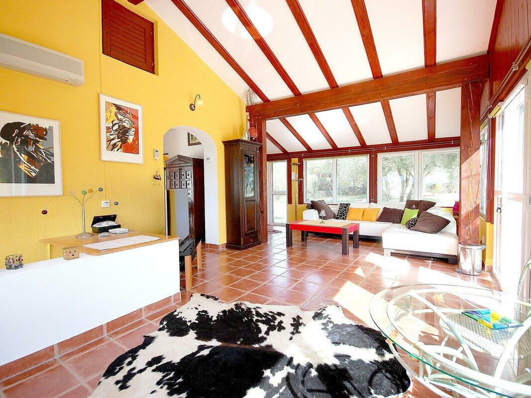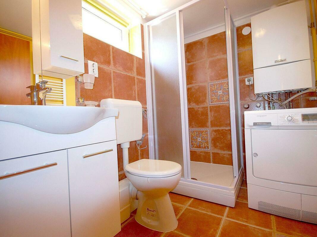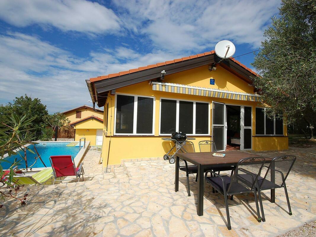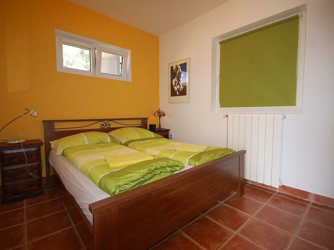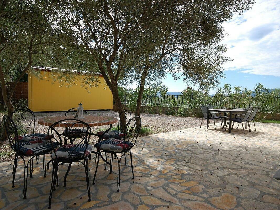 New, child friendly, modern detached house "Malnar Emira", built in 2010, surrounded by trees. House Equipment: air conditioning, washing machine (private use). Access & Parking: private parking. All-season motor access to the house. Situation: on the outskirts of Krk, in the district of Skrbcici, secluded, quiet position at the edge of the forest. View from the apartment of the garden and the forest. Surroundings of the house: grounds (private use, fenced), swimming pool (private use, length 7 m x width 4 m, open from 04.07. untill 01 .10.), outside shower (private use), barbecue (private use). Facilities and distances: shop 12 km, grocers 400 m, supermarket 1.2 km, restaurant 400 m, shingle beach 2 km, bathing bay 2 km, pebble beach 2 km, rocky beach 2 km, sports centre 12 km, tennis 12 km. Please note, nearby is a main road in 1 km. 4-room house, detached, for 6 people, 115 m2 on 2 levels, modern furnishings. Living/dining room with satellite TV, DVD, hi-fi system and dining-table. Smoking allowed. Internet (Wireless LAN [WLAN]). Sleeping room with 1 double bed. Sleeping room with 1 double bed. Sleeping room with 1 double bed. Kitchenette with 4 hot plates, micro wave, oven, dining table, dishwasher, fridge and deep freezer. Shower, shower/WC and separate WC. Terrace, patio, terrace furniture, 6 deck chairs. Other equipment: washing machine. Mandatory Fees paid on arrival: Breakage deposit in cash - 300.00 EUR fixed price Local tax - 0.15 EUR per person/day enrollment / registration fee - 4.00 EUR per person