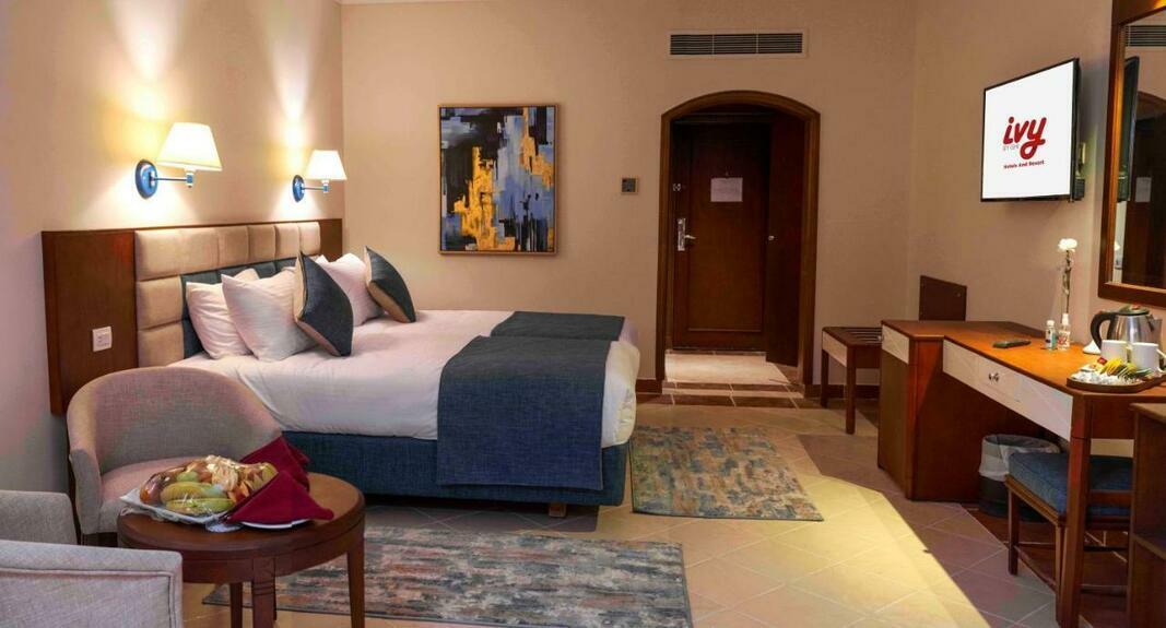 IVY CYRENE ISLAND (ex Cyrene Island Hotel) is a resort in the Ras Nasrani area, designed for guests who want to combine a Red Sea beach holiday with activities and entertainment. It’s especially enjoyable for families: a large water park, daytime activities and evening shows help make every day feel different. The resort is convenient for guests who value a short transfer and proximity to key areas. Rooms are a few minutes from the beach, and a shuttle to the sea is available (according to the hotel — very quick). Another plus is the variety of views: garden, pool or sea. The resort is located in Sharm El Sheikh, in the Ras Nasrani area. Concept-wise, it’s a comfortable option for families and couples who care about animation, on-site infrastructure and the chance to alternate sea time with pools. The hotel states there are 207 rooms, all in an updated style, with essential amenities for a relaxed stay. Dining focuses on a main buffet restaurant with themed dinners, plus several venues with set menus. On the territory there are 2 outdoor pool zones, a separate heated kids’ pool, a large water park with 25 slides, a kids club and evening shows. For wellness and relaxation, the resort lists SPA, sauna, hammam, jacuzzi and a fitness center. The official accommodation page lists Standard rooms with different views: Standard Garden View, Standard Pool View, Standard Sea View. All three are 34 m², for up to 4 guests, with twin or king beds; the key difference is the balcony view (garden, pool or Red Sea). The hotel lists: individual air conditioning, safe, hair dryer, balcony/terrace/window, satellite TV, tea & coffee set, mini-bar, free Wi-Fi, fully equipped bathroom and telephone. Baby cot and ironing board are on request. The main restaurant Ghadamis operates as a buffet: breakfast 07:00–10:00, lunch 13:00–15:00, dinner 18:30–21:00. The hotel also mentions themed dinner buffets and live cooking; a supervised kids’ area is available in the restaurant. The dining page lists set-menu restaurants: Chin Chin (Chinese), Mashrabya (Oriental) and Tix Mix (Mexican), all 18:30–21:00. There is also the Italian buffet Pomodoro (18:30–21:00). A Seafood Restaurant is noted as extra charge and requires advance reservation (18:30–21:00). In the facilities section, the hotel describes a sandy beach and mentions a jetty, helpful for observing marine life. Rooms are a few minutes from the beach; a free beach shuttle is also mentioned (under a minute according to the hotel). The hotel lists 2 outdoor pool areas plus a heated kids’ pool. Pool hours are 08:00 until sunset. The description also includes parameters: Main Pool (Breeze) depth about 1.35 m (area 1350 m²), Al Baida Pool depth about 1.20 m (area 360 m²), Children’s Pool depth about 0.5 m (area 20 m²). The water park is presented as a key feature of the resort, with 25 slides of different types (wide family slides, tube slides, “free fall” and a water play area). The hotel emphasizes high design and safety standards. For children, the hotel mentions a Kids Club with supervised activities: 10:00–13:00 with a break 13:00–14:00, for ages 5–12, located near the Island Theater. Evening Mini Disco is also mentioned, as well as a separate heated kids’ pool. The hotel highlights daytime animation (games, competitions, pool activities) and evening shows and themed parties (such as foam party, fire show, dance shows and other scheduled programs). A dive club is also mentioned, with snorkeling and diving activities and lessons for different levels. The hotel lists New Star SPA with relaxation facilities: sauna, steam room and jacuzzi, plus massage rooms. SPA hours: 09:00–21:00, age restriction 16+. The fitness center is also listed as 09:00–21:00; sportswear and shoes are recommended. The official dining page details restaurants, while bars are mentioned more generally as part of the resort experience (relaxing by the pool and on the beach). Typically, resorts of this type offer pool bars and bars in common areas serving soft drinks, tea/coffee and cocktails. The exact drinks list and what’s included vs. extra charge is best confirmed at booking, as it can depend on the selected stay concept. Besides the beach and pools, the resort lists a water park, a kids club, areas for evening shows, a SPA and a fitness center. For sea access and marine viewing, a jetty is mentioned, along with a lively schedule of daytime activities and evening events. According to the hotel, Soho Square is about a 5-minute drive away. The area also commonly highlights Shark’s Bay and nearby beaches along Ras Nasrani. If you focus on “up to 5 km”, guests typically visit SOHO Square, head toward Shark’s Bay, and explore the closest beaches — exact distance depends on the route and entry point.Offer at IVY CYRENE ISLAND in Sharm El Sheikh (Egypt)