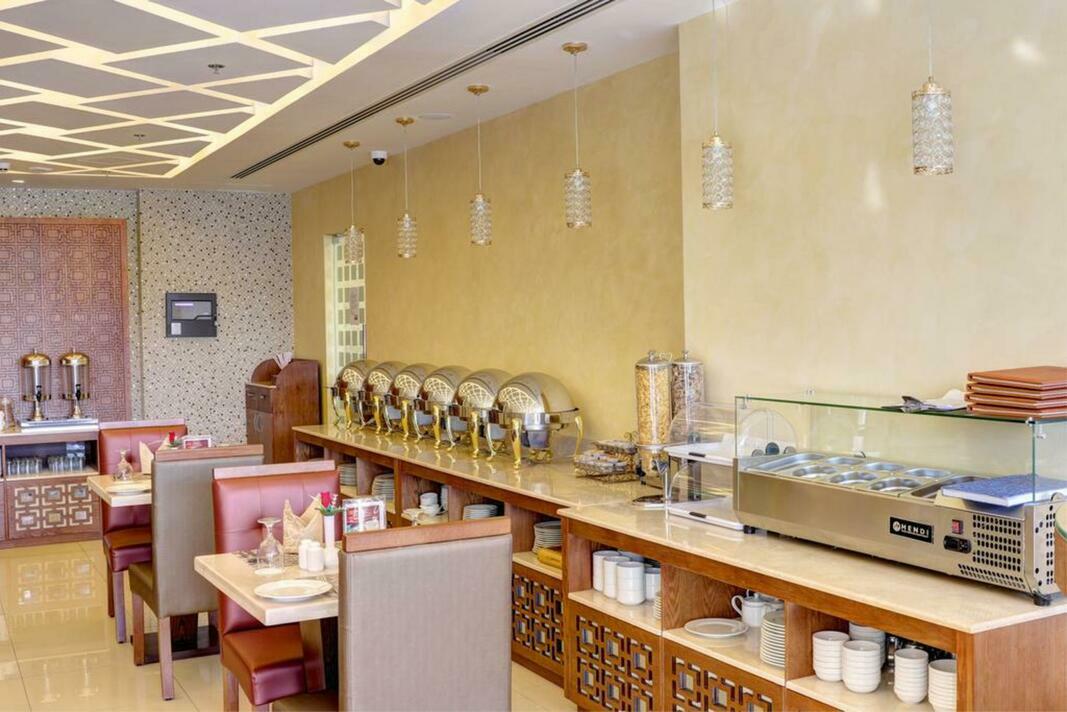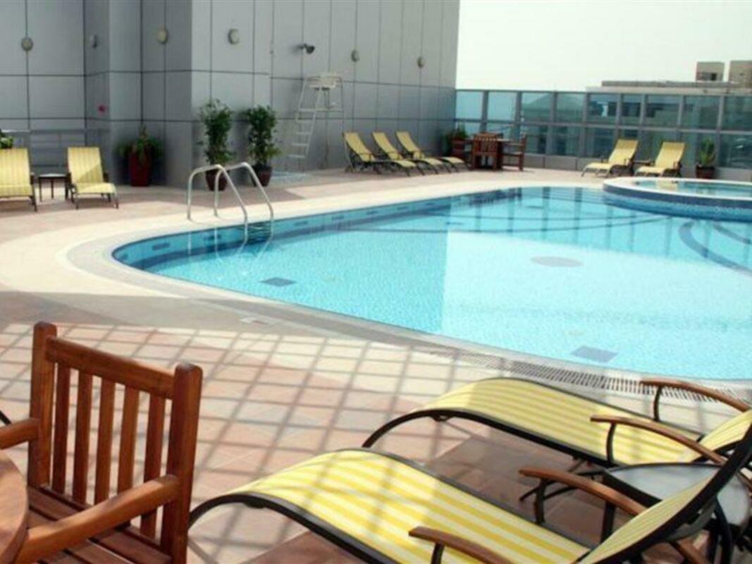 Dunes Hotel Apartments Al Barsha is located in Al Barsha area. Shopping and the nightlife/restaurants are within walking distance from the hotel, close proximity to the airport, city centre, business and financial districts. It is also situated less than 500 m from Mall Emirates. The facilities and services include 24 h reception, lobby area, lifts, bar, restaurant, rooftop outdoor pool, Fitness centre, steam bath, Jacuzzi and parking. The apartments are equipped with A/C, TV, telephone, WiFi, safe, kitchen with fridge and microwave, bathroom with bathtub/shower and hairdryer. Laundry service is available (with extra charge). Address: Al Barsha, 115557 Dubai, United Arab Emirates.