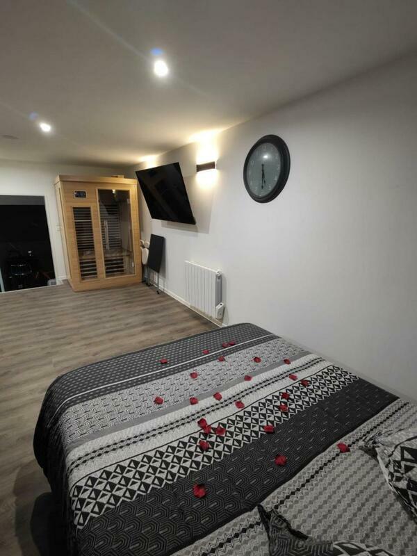 Situated in Coupvray, 38 km from Domaine de Chaalis and 41 km from Gare du Nord, Suite pour les Amoureux_Val d'Europe Disney features accommodation with free WiFi, a garden with a barbecue, and access to a sauna and a hot tub. The accommodation has a hot tub and a spa bath.