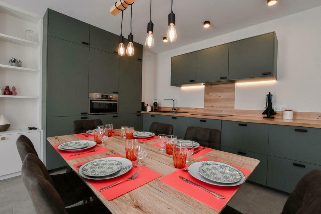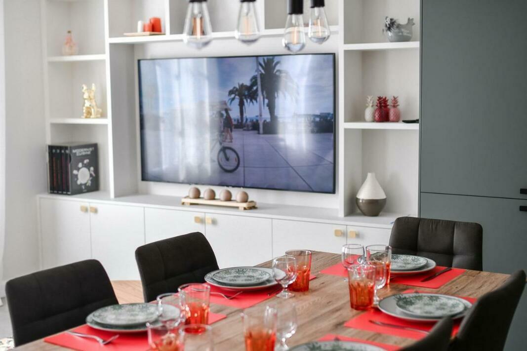 The 2-bedroom apartment comes with a living room with flat-screen TV, and a fully equipped kitchen.