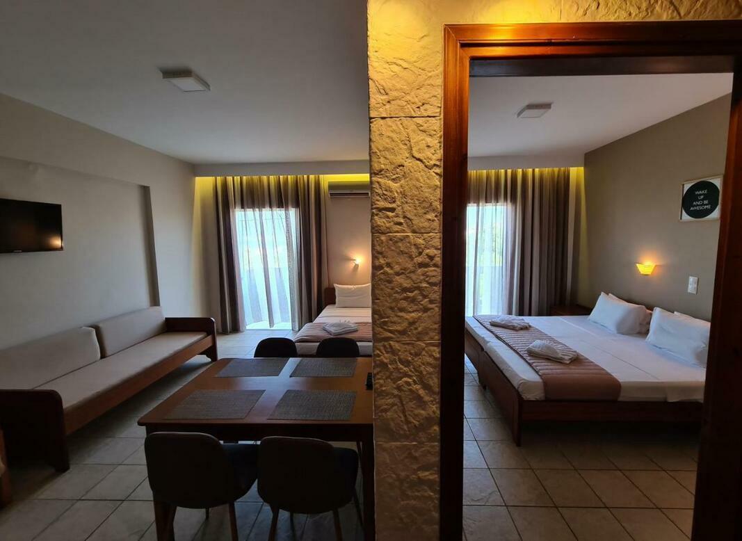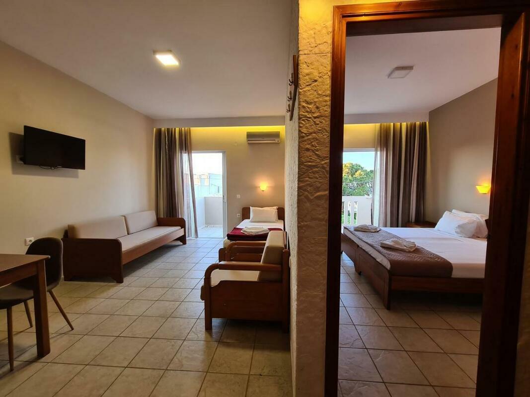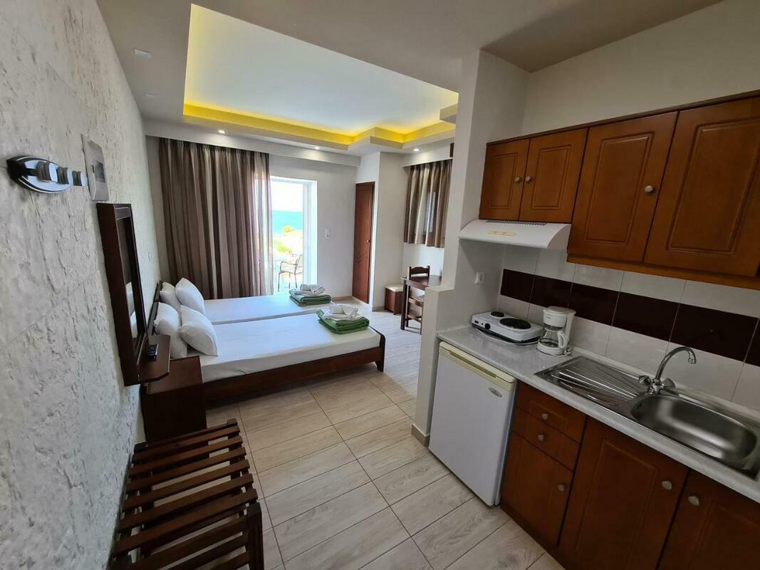 Rooms are equipped with air conditioning and central heating. Guests can relax and enjoy the sea views from the balcony or private terrace of some rooms. The rooms have a queen-size bed and a sofa bed. Extra beds can be requested. A safe provides secure storage for guests' personal property. The kitchenette comes with a refrigerator and a tea/coffee station. A flatscreen television and WiFi (no extra charge) are provided as well. Bathrooms are equipped with a shower and include a hairdryer. For extra comfort in the bathrooms, guests are offered cosmetic products. The hotel has family rooms and non-smoking rooms.