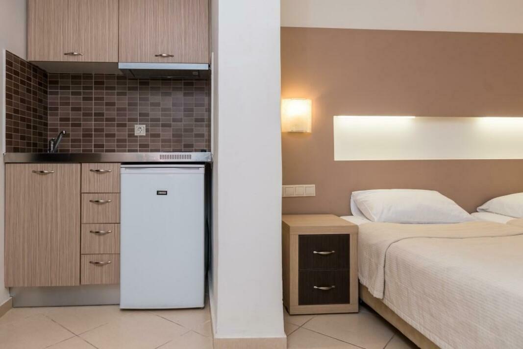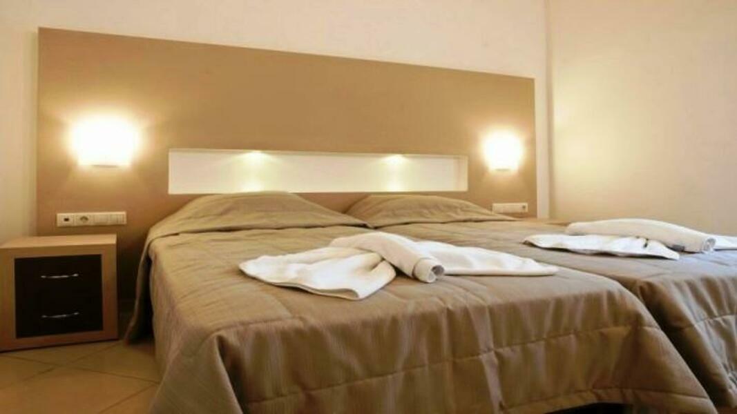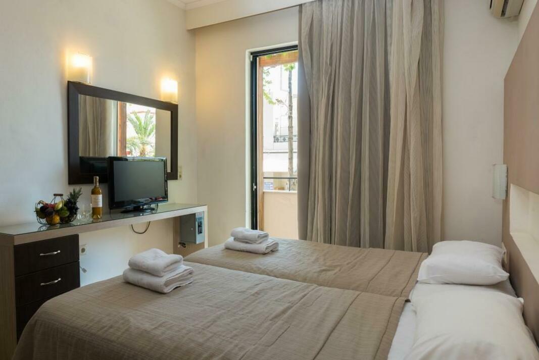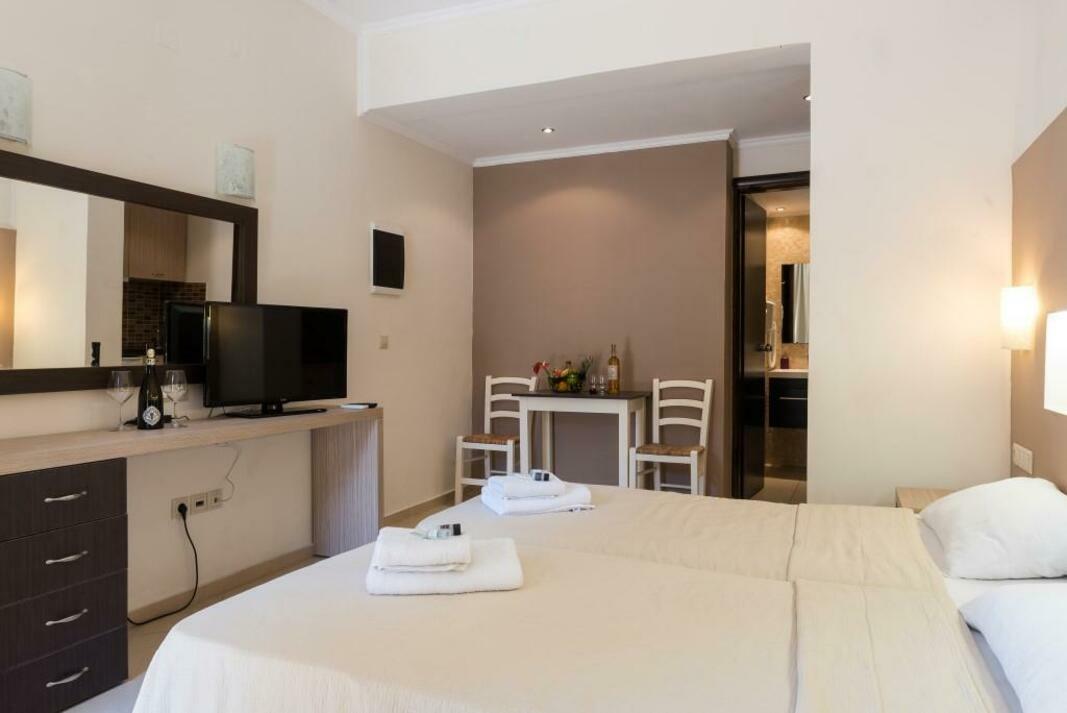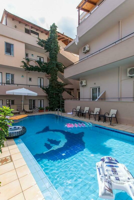 Centrally located in Georgioupolis, this hotel is right on the beach.