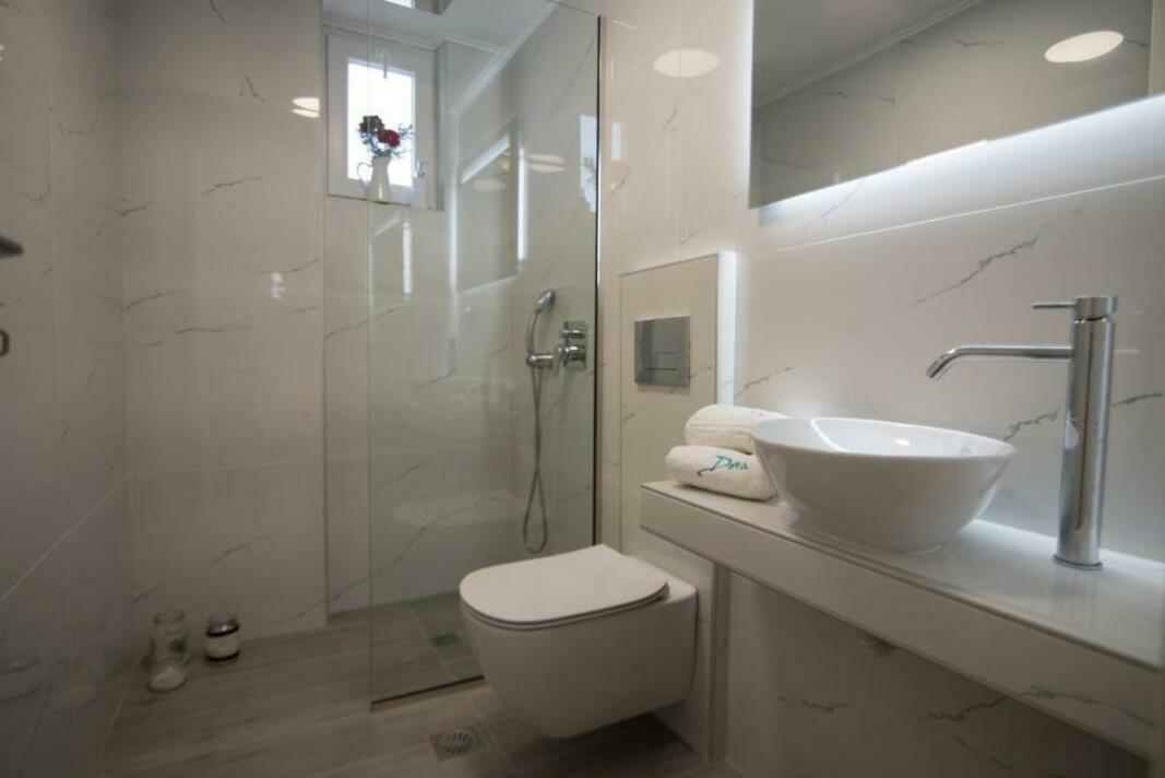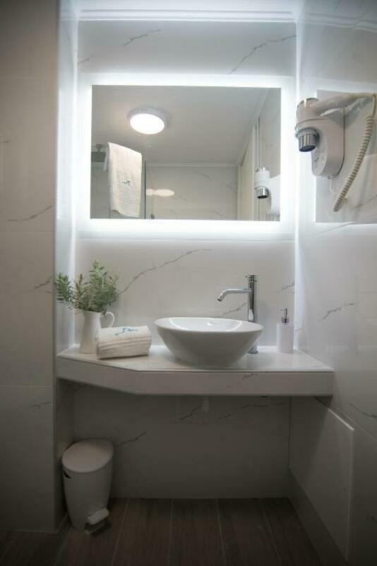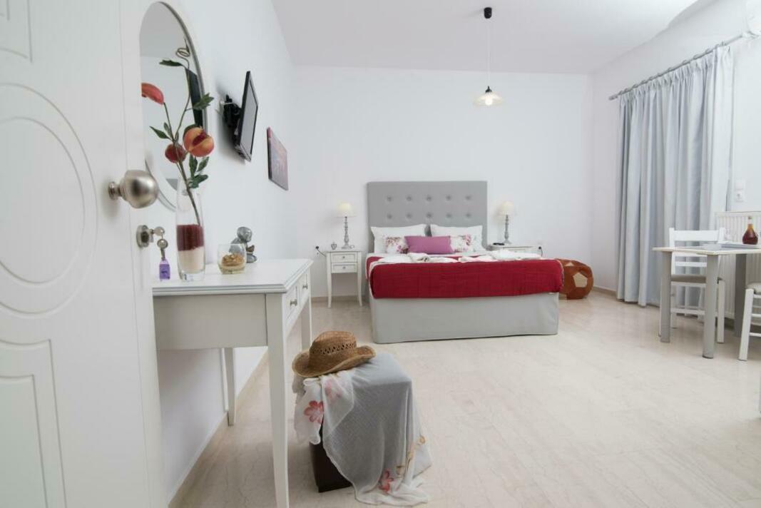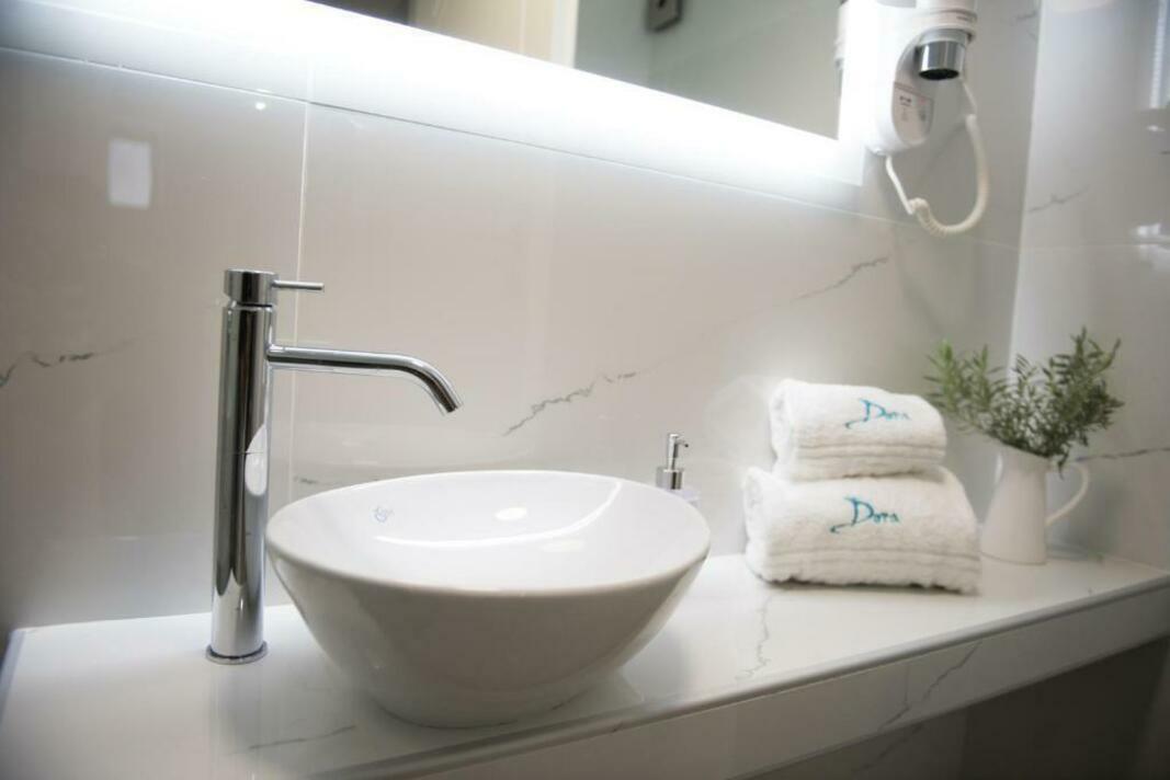 Fitted with tiled or marble floors and modern furnishings, the air-conditioned studios of Dora have a kitchenette with fridge, dining table, coffee machine and stovetop. Each unit includes a private bathroom with bathtub or shower, and free toiletries. A safe and a flat-screen TV are available.