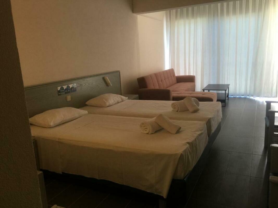 Centrally located in Kalithea, this hotel is right on the beach.