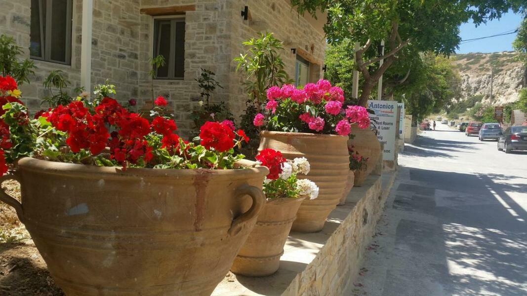 Apartments Antonios is situated on a quiet back road, directly at the starting point of the hike over to the Red Beach. Free private parking is available right behind the premises.