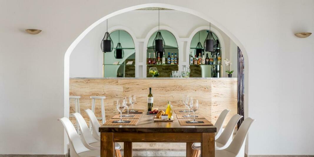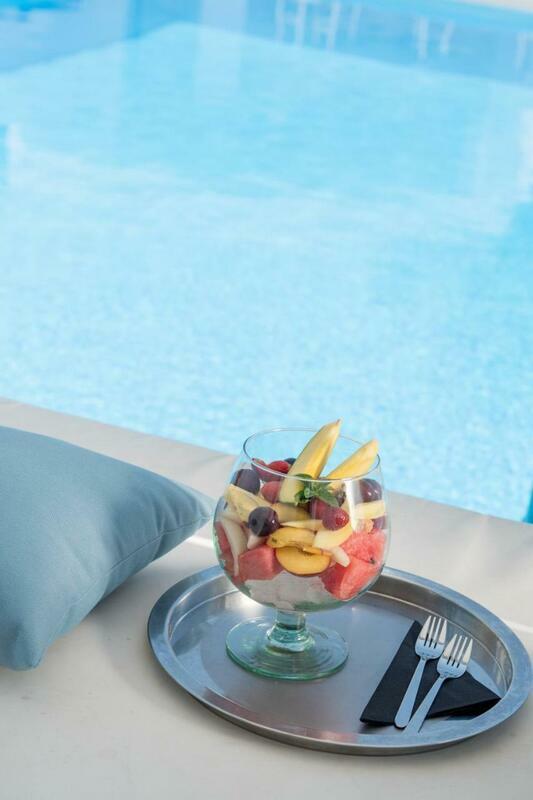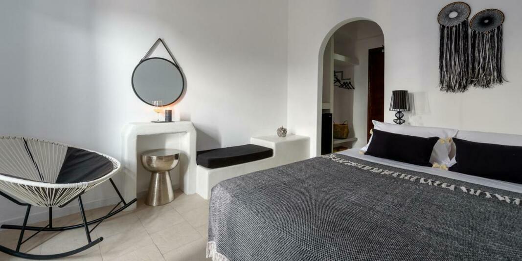 This hotel warmly welcomes guests in Perissa.