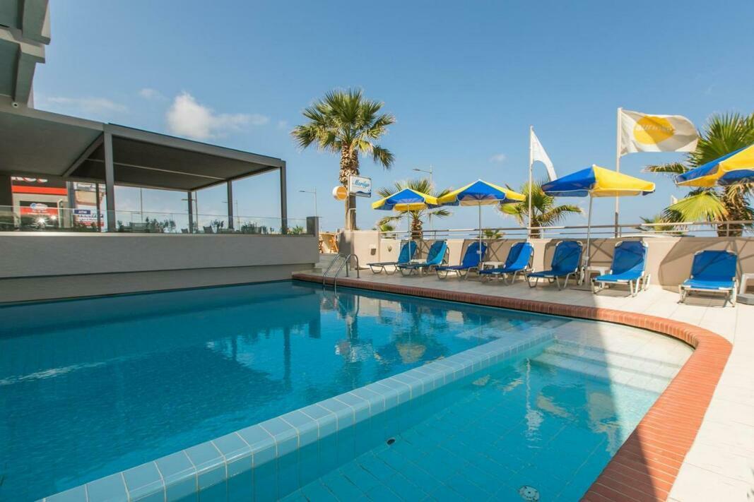 Spend warm, sunny days relaxing around the peaceful outdoor pool of Marilyn Apartments. The modern apartments are nicely decorated and some offer beautiful sea views.