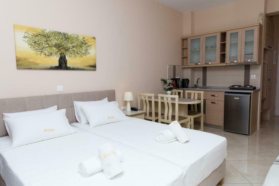 Enjoying a beautiful location on Perivolia’s seafront, Marilyn Apartments offers comfortable studios and apartments appointed with a well-equipped kitchenette and private balcony.