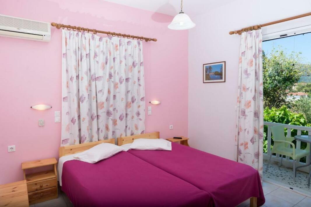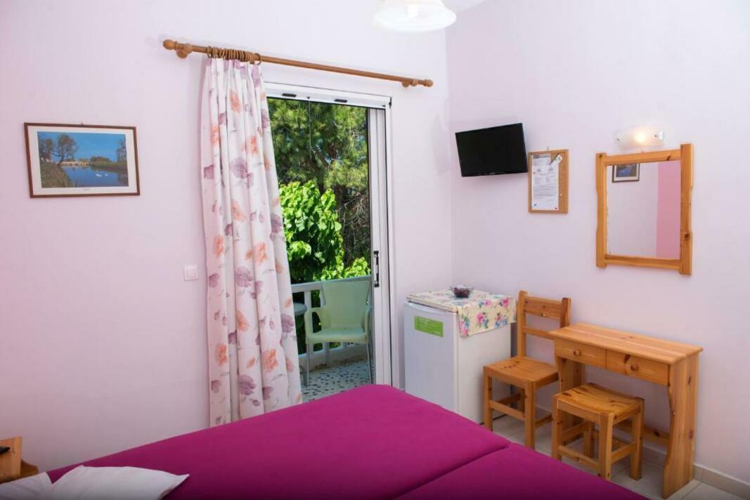 Featuring colourful walls and floral curtains, all air-conditioned studios open to a balcony with garden views. Each is fitted with a kitchenette with a fridge, kettle and kitchenware. Facilities also include a TV and private bathroom.