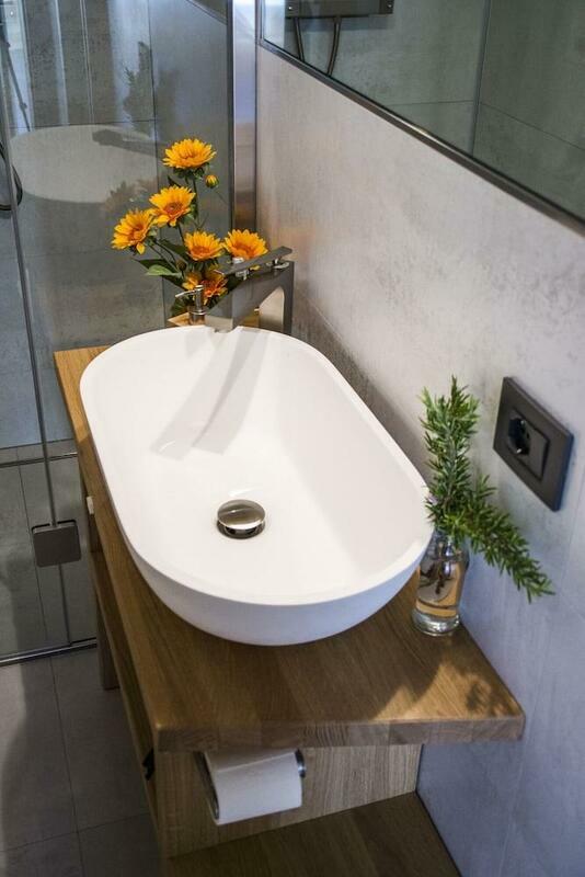 Central heating ensures that rooms maintain comfortable temperatures. A balcony or terrace is a standard feature of some rooms. The rooms have a queen-size bed and a sofa bed. Extra beds can be requested. Additional features include a refrigerator and a tea/coffee station. An ironing set is provided for guests' convenience. A TV, a plug adapter and WiFi are provided as well. Slippers are included. Bathrooms are equipped with a shower and a hairdryer. As a special feature, bathrooms are also stocked with cosmetic products and a selection of towels. The hotel has family rooms and non-smoking rooms.