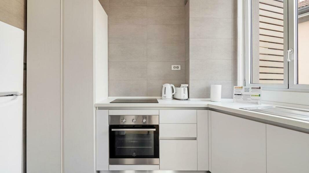 Make yourself comfortable in this air-conditioned apartment, featuring a kitchen with a refrigerator and an oven. Conveniences include an electric kettle and a washing machine.