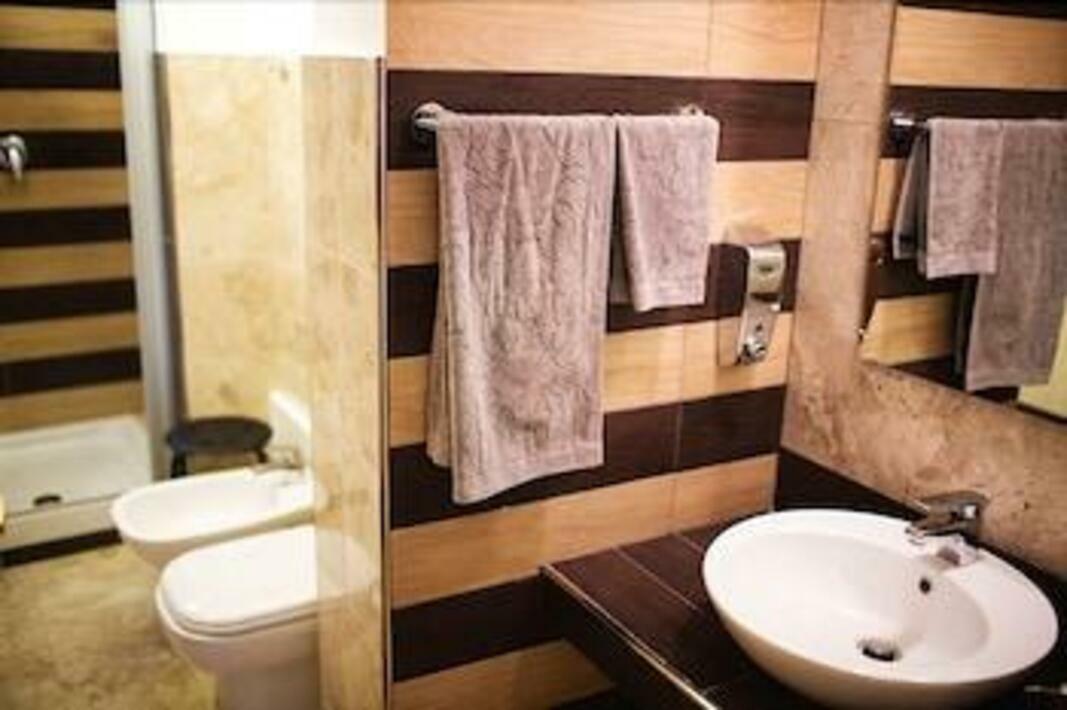 Rooms are equipped with air conditioning and central heating. Guests can relax and enjoy the sea views from the balcony or private terrace of some rooms. The rooms have a queen-size bed and a sofa bed. Extra beds can be requested. A desk is provided. Additional features include a refrigerator and a tea/coffee station. Further amenities include a washing machine and an ironing set. A flatscreen television and WiFi (no extra charge) are provided as well. A hairdryer and bathrobes are available in the bathrooms, which are equipped with a shower. For extra comfort in the bathrooms, guests are offered a selection of towels. Guests can also book wheelchair-friendly rooms with wheelchair-accessible bathrooms. The hotel has family rooms and non-smoking rooms.