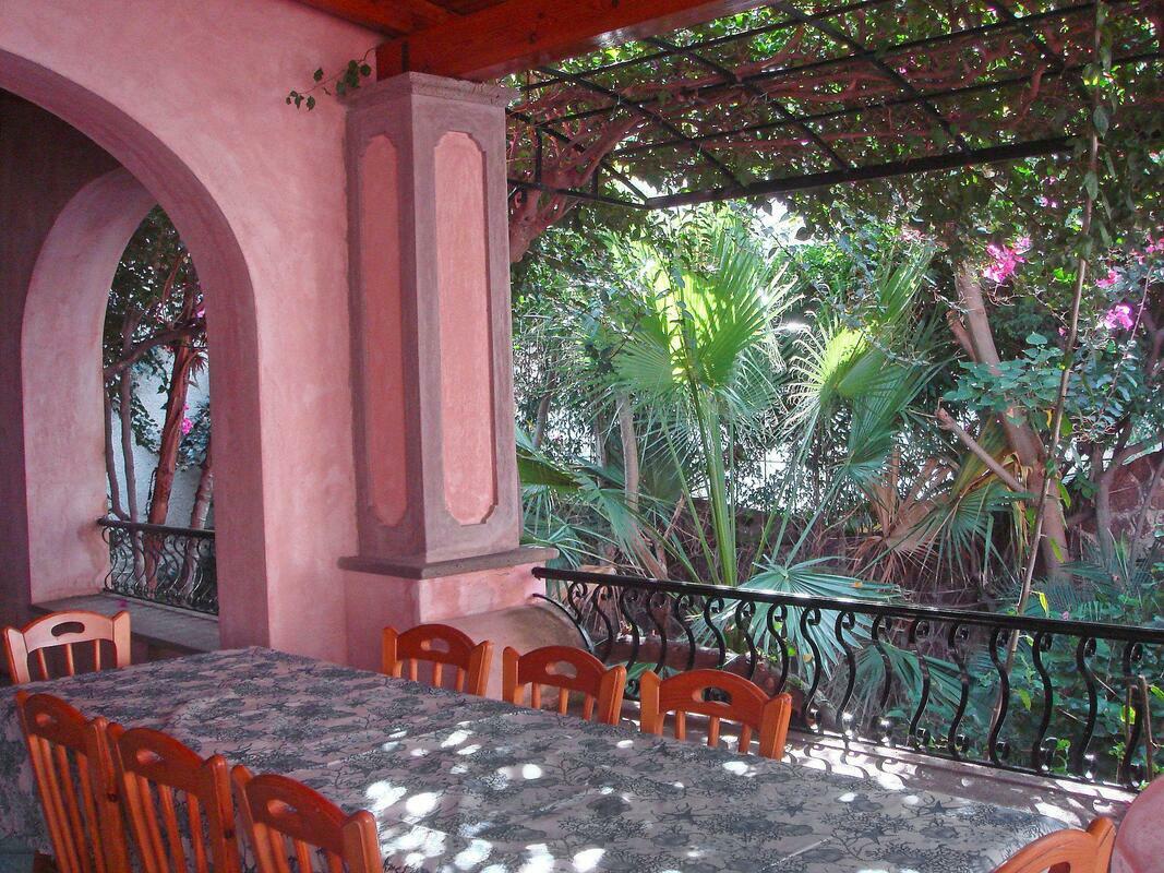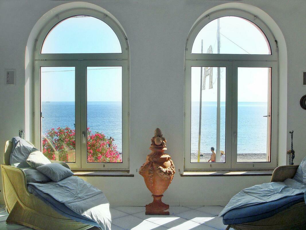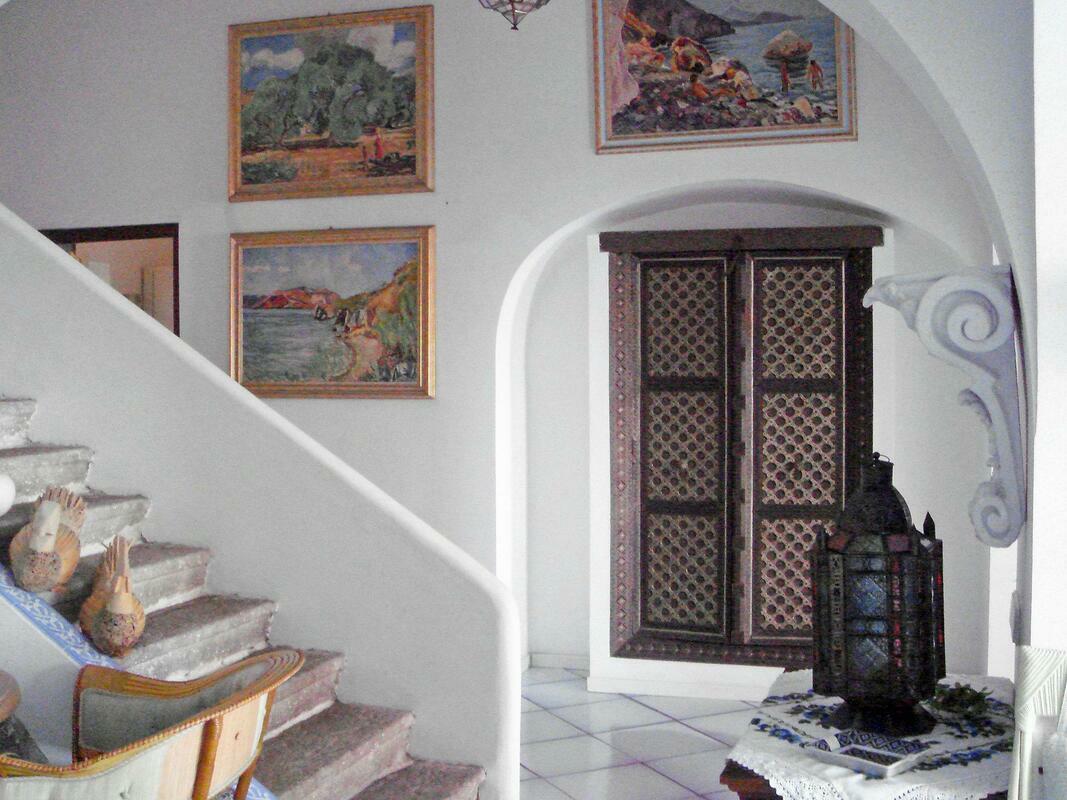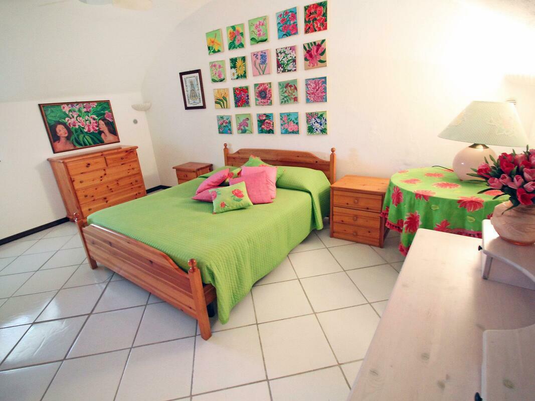 Comfortable house "Bacot", semi-detached. In the centre of Canneto, in a sunny position, 10 m from the sea, road to cross. Private: outdoor shower. Room cleaning daily on request (extra). Cook on request (extra). Public parking on the road. Shop, grocery 50 m, supermarket 20 m, restaurant 100 m, sandy beach "Canneto" 10 m. 5-room house 350 m2 on 2 levels. Spacious, antique and tasteful furnishings: 2 double bedrooms, each room with shower/bidet/WC and fan. Upper floor: large living room with open-hearth fireplace and satellite TV (flat screen), radio and CD-player. 2 double bedrooms, each room with shower/bidet/WC and fan. Kitchen (4 hot plates, oven, dishwasher, freezer) with dining table. Large terrace 100 m2, small patio. Terrace furniture. Marvellous view of the sea. Facilities: washing machine. Mandatory Fees paid on arrival: Breakage deposit in cash - 300.00 EUR fixed price Final cleaning - 15.00 EUR per person