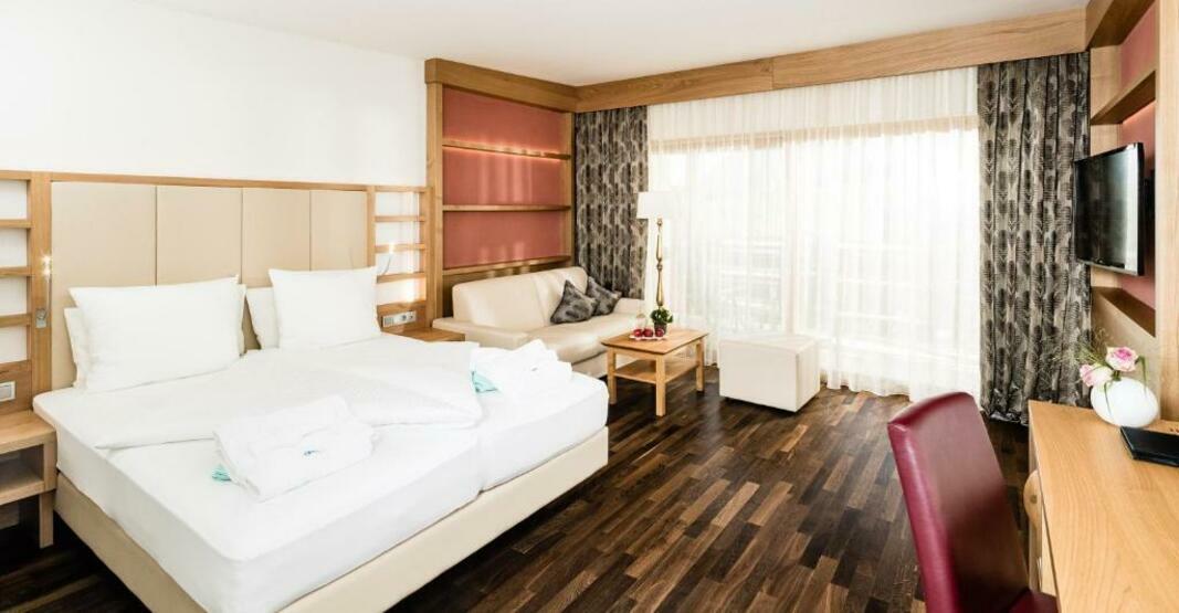 The pool complex ensures comfortable swimming with its indoor and outdoor pools and pleasantly heated water. Children can enjoy a special swimming area just for them. Guests can treat themselves to refreshing drinks at the poolside snack bar and a relaxing soak in the hot tub. A short break or an entire afternoon on the sun terrace, which features sun loungers and parasols, is time well spent. The wide range of activities offered at the hotel ensures that there is something new to do every day, including cycling/mountain biking, tennis, crazy golf, fishing and horse riding. Water sports enthusiasts can enjoy windsurfing, canoeing and diving. Guests can enjoy a wide range of indoor sports, including a gym, table tennis, badminton, billiards, yoga and aerobics. Various wellness options are available at the hotel, including a spa, a sauna, a steam bath, a hammam, massage treatments and a solarium. Leisure facilities include an entertainment programme, a kids' club and live music. Copyright GIATA 2004 - 2024. Multilingual, powered by www.giata.com for client no. 124971