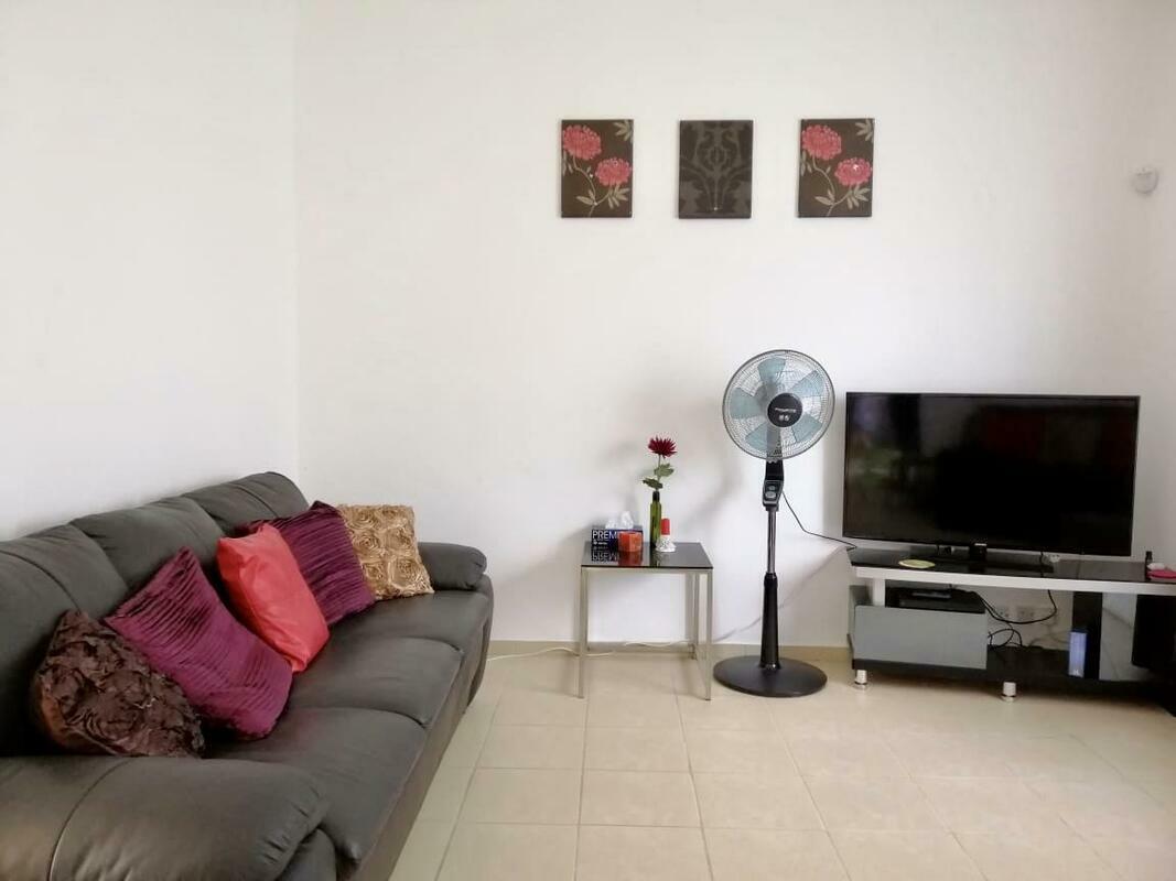 The villa has 3 bedrooms, a flat-screen TV with cable channels, an equipped kitchen with a microwave and a fridge, a washing machine, and 2 bathrooms with a shower.