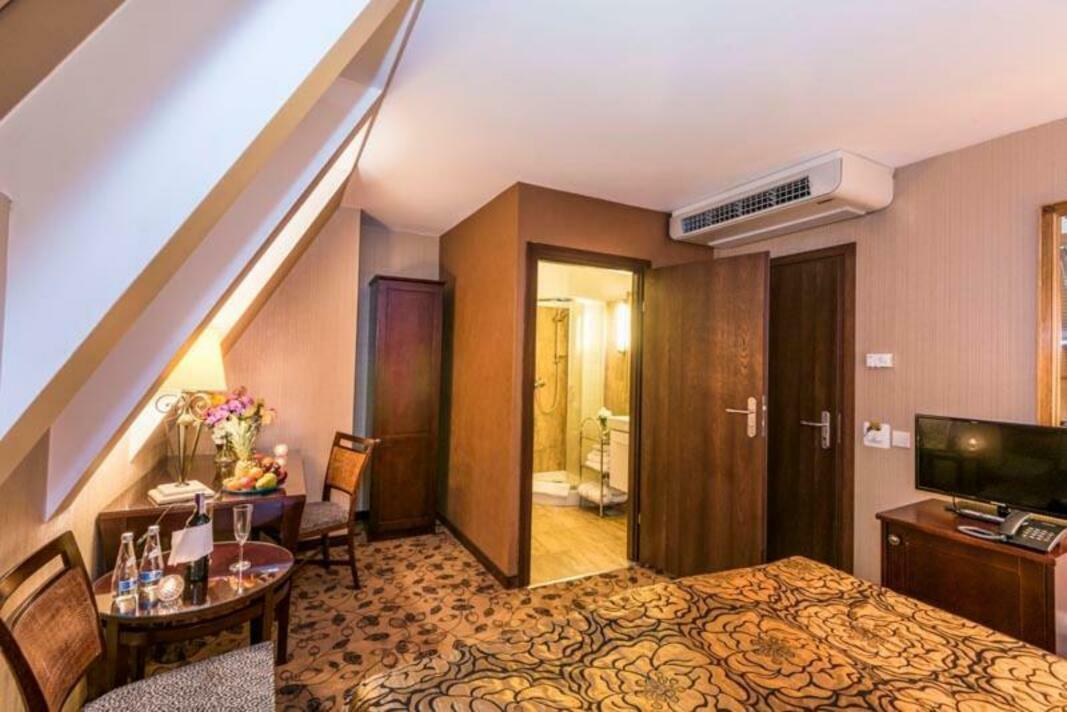 Air conditioning and individually adjustable heating ensure that rooms maintain comfortable temperatures. All rooms are carpeted and have a double bed or a queen-size bed. Extra beds can be requested. A safe and a desk are also available. Guests will also find a tea/coffee station included among the standard features. An ironing set is provided for guests' convenience. A direct dial telephone, a television with satellite/cable channels, a radio and WiFi are provided as well. Guests can take advantage of the nightly turndown service. Slippers are included. A hairdryer and bathrobes are provided in the bathrooms, which include a shower and a bathtub. For extra comfort in the bathrooms, guests are offered cosmetic products. Wheelchair-friendly rooms with wheelchair-accessible bathrooms are also available. The hotel has family rooms, non-smoking rooms and smoking rooms.