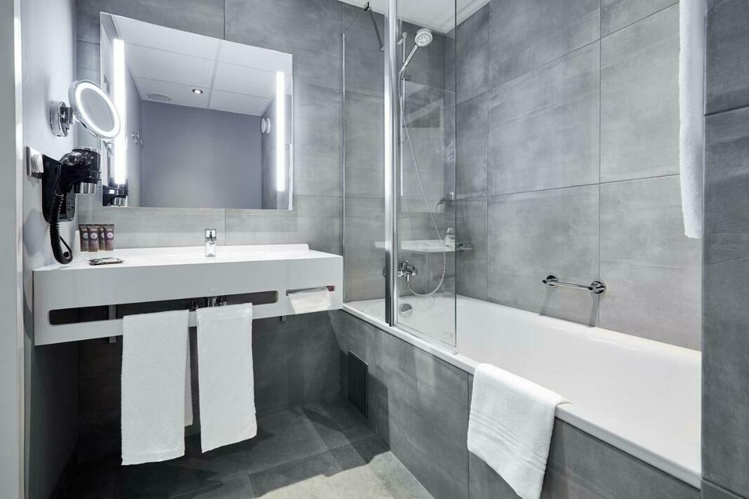 Air conditioning and central heating ensure that rooms maintain comfortable temperatures. All rooms are carpeted and include a double bed, a queen-size bed, a king-size bed or a sofa bed. Extra beds can be requested. A safe, a minibar and a desk are also available. Additional features include a mini fridge and a tea/coffee station. An ironing set is provided for guests' convenience. A direct dial telephone, a television with satellite/cable channels, a radio and WiFi (no extra charge) are provided as well. Cleaning on departure is among the services offered. Guests will also find slippers in their rooms. Bathrooms are equipped with a shower, a bathtub and a whirlpool bath. A hairdryer, bathrobes and a telephone are provided. For extra comfort in the bathrooms, guests are offered cosmetic products. Guests can also book wheelchair-friendly rooms with wheelchair-accessible bathrooms. The hotel has family rooms, non-smoking rooms and smoking rooms.