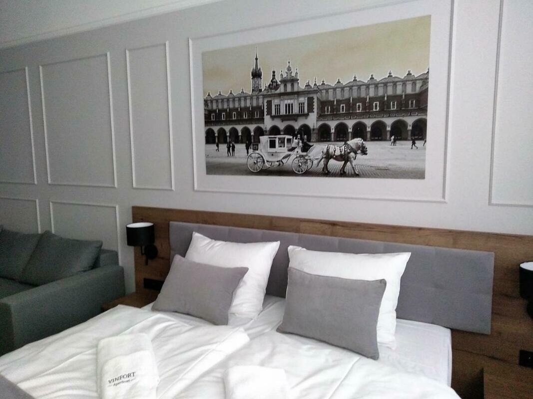 This apartment hotel warmly welcomes guests in Krakow.