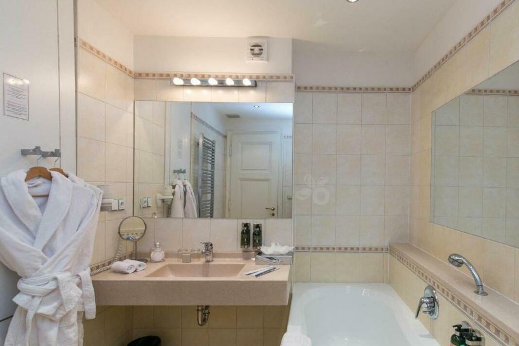 Rooms are equipped with air conditioning and central heating. The rooms have a king-size bed and a sofa bed. Extra beds can be requested. A safe, a minibar and a desk are also available. Additional features include a mini fridge and a tea/coffee station. An ironing set is provided for guests' convenience. A telephone, satellite television, a radio and WiFi (no extra charge) are provided as well. Slippers are included. A hairdryer and bathrobes are available in the bathrooms, which are equipped with a shower and a bathtub. For extra comfort in the bathrooms, guests are offered cosmetic products. The hotel has family rooms and non-smoking rooms.