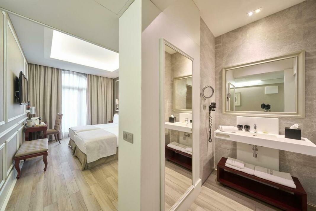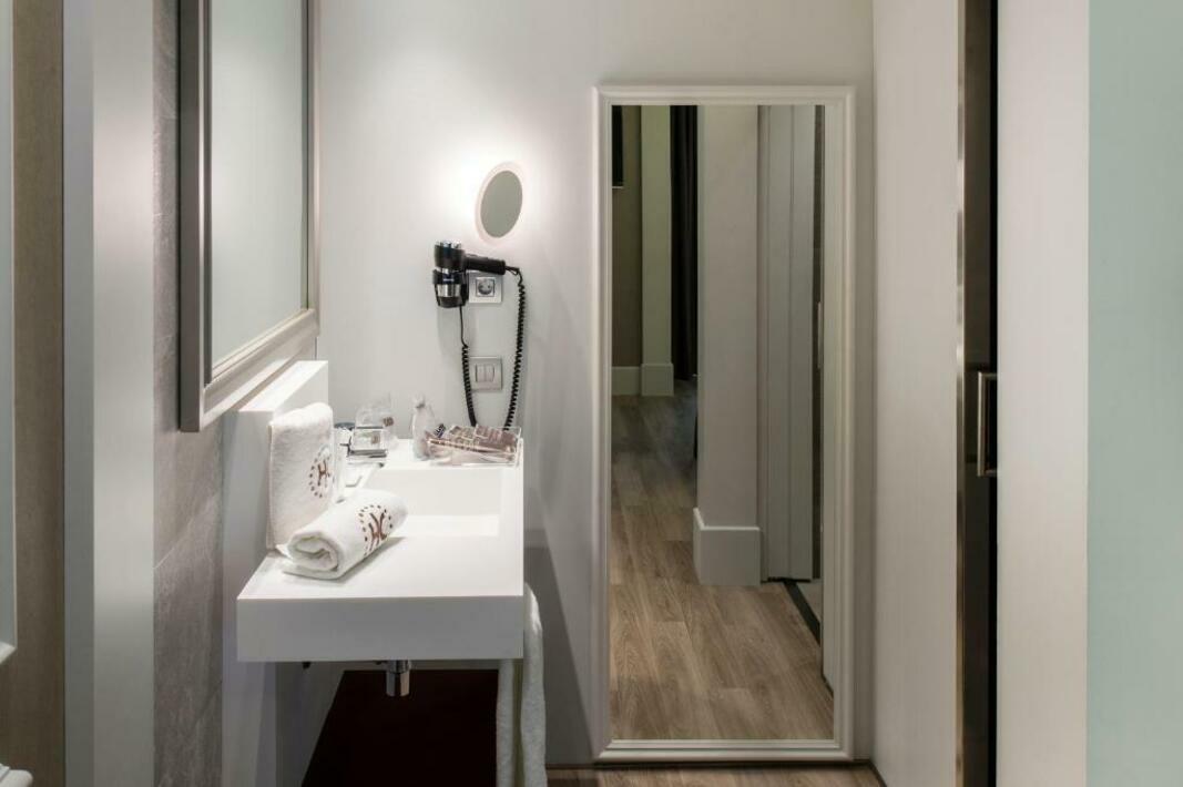Rooms are equipped with air conditioning and central heating. Rooms have a double bed, a queen-size bed or a king-size bed. Extra beds can be requested. A safe, a minibar and a desk are also available. Guests will also find a tea/coffee station included among the standard features. A trouser press is provided for guests' convenience. A telephone, satellite television and WiFi are provided as well. A hairdryer and a telephone are available in the bathrooms, which are equipped with a shower and a bathtub. As a special feature, bathrooms are also stocked with cosmetic products and a selection of towels. Wheelchair-friendly rooms can be booked. The hotel has non-smoking rooms.