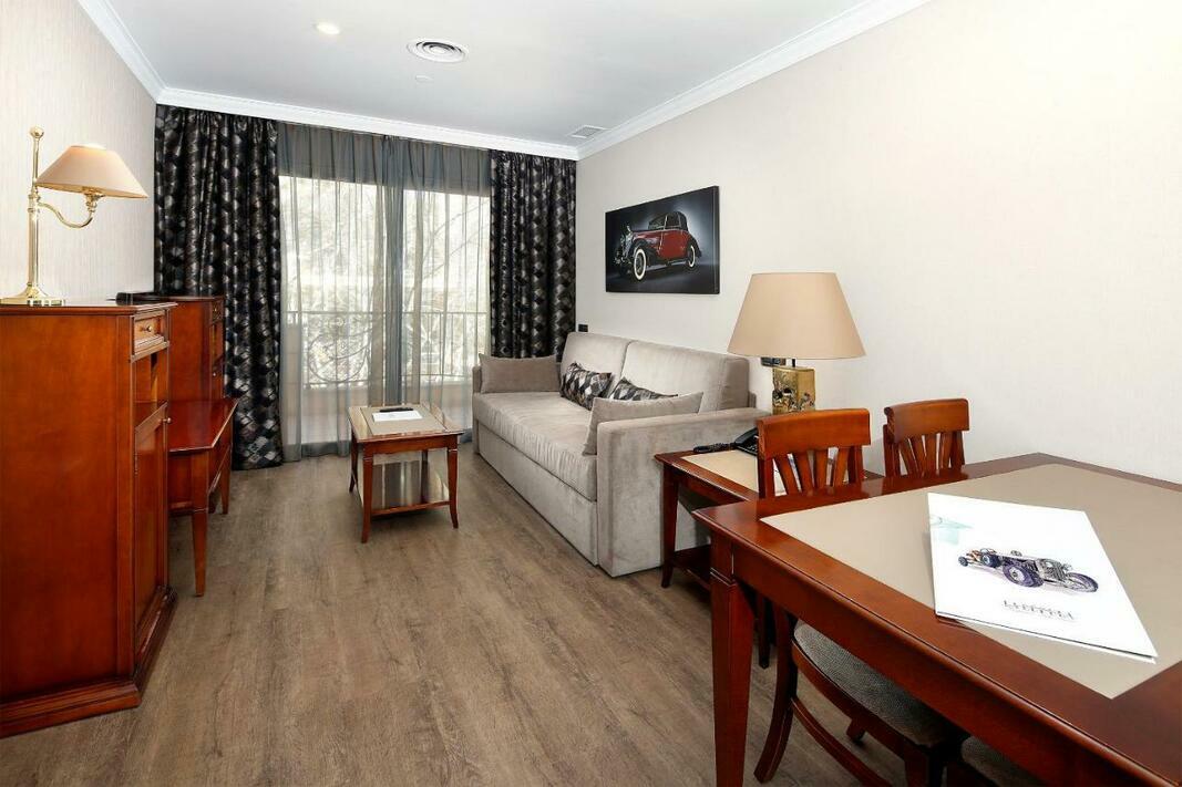 Air conditioning and individually adjustable heating ensure that rooms maintain comfortable temperatures. A balcony is among the standard features of some rooms. The rooms have a queen-size bed and a sofa bed. Extra beds can be requested. A safe, a minibar and a desk are also available. Additional features include a refrigerator, a stovetop, a microwave, a tea/coffee station and a dishwasher. There is also a washing machine, an ironing set and a trouser press. A direct dial telephone, a television with satellite/cable channels, a radio and WiFi (no extra charge) provide all the essentials for a comfortable holiday. Guests can take advantage of the nightly turndown service. Bathrooms are equipped with a shower, a bathtub and a bidet. A hairdryer and a telephone are available for daily use. For extra comfort in the bathrooms, guests are offered cosmetic products. Guests can also book wheelchair-friendly rooms with wheelchair-accessible bathrooms. The complex has family rooms and non-smoking rooms.