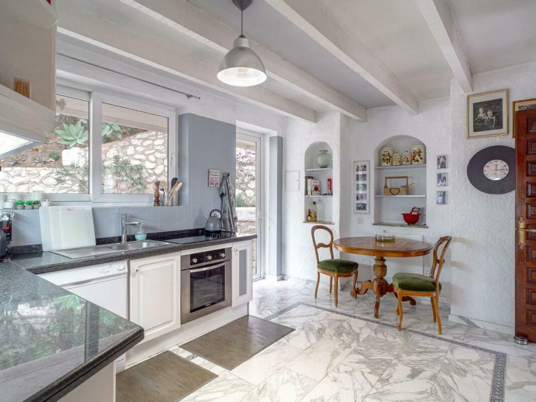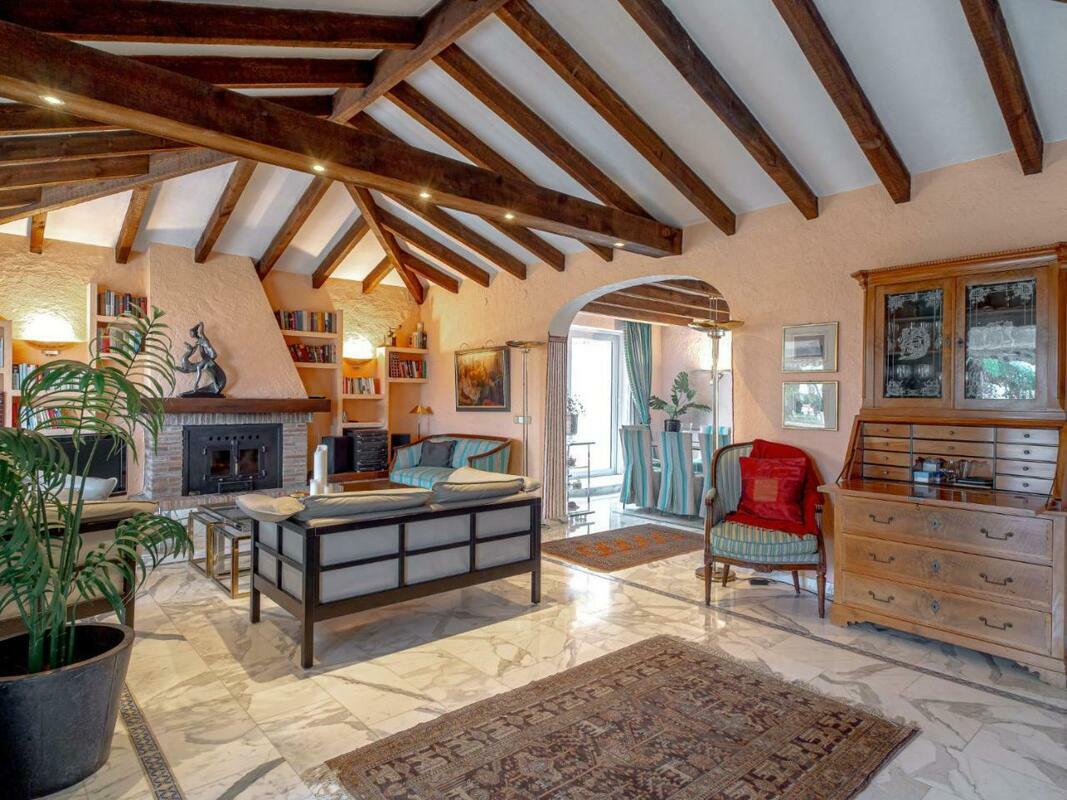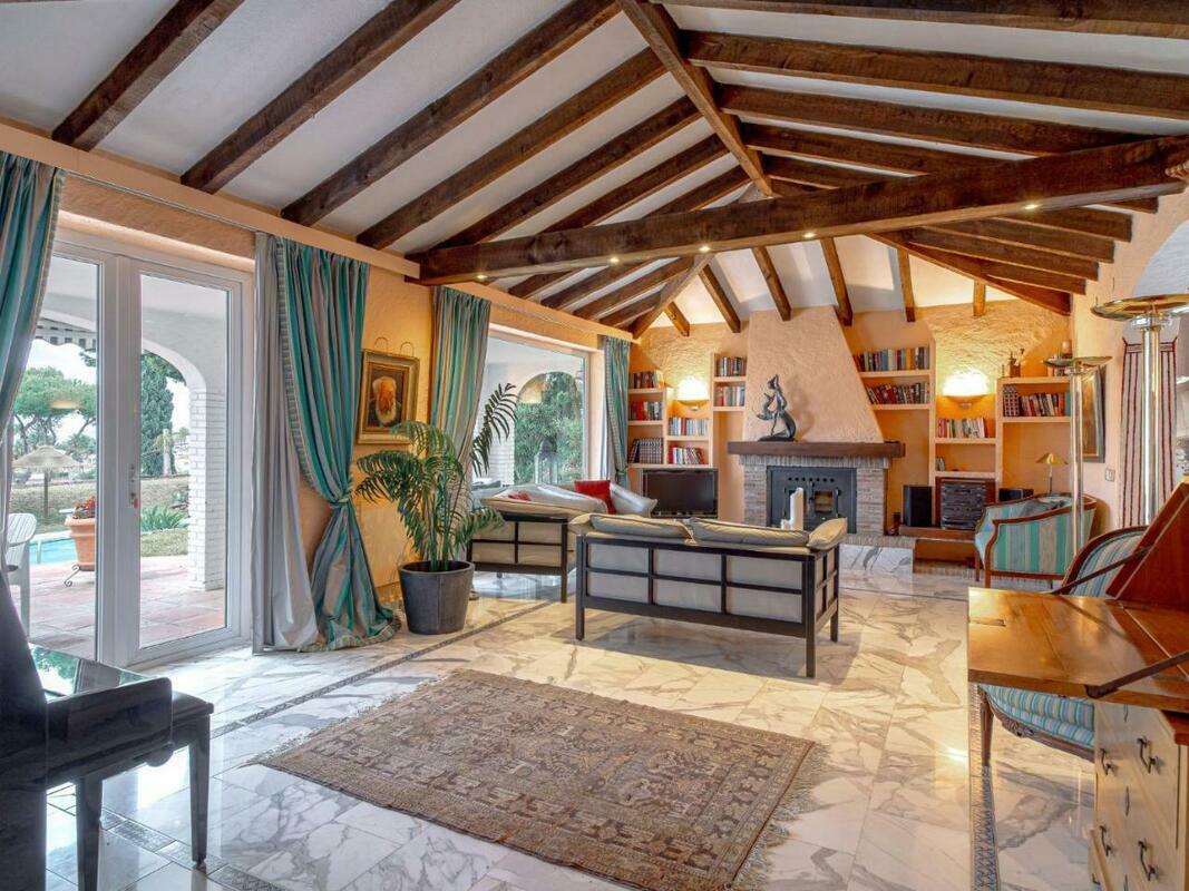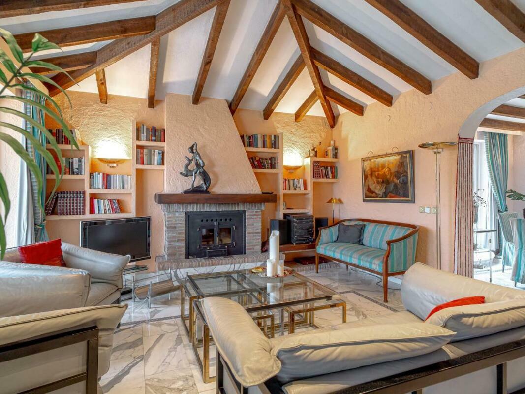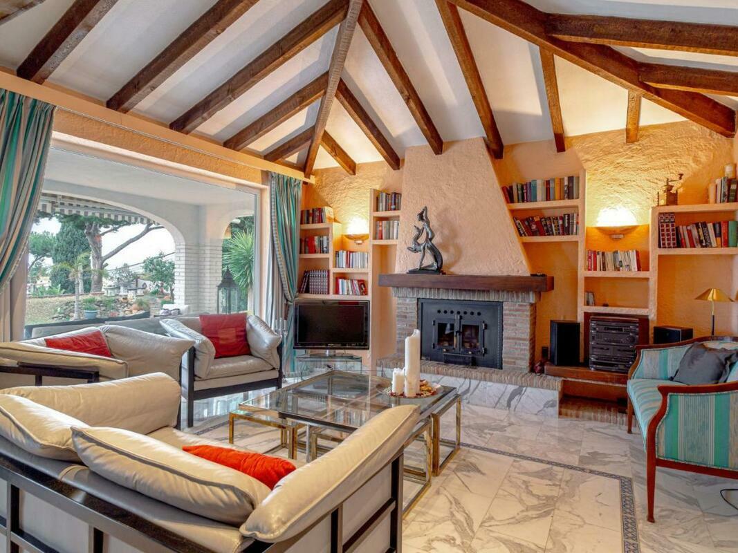 The spacious villa has 3 bedrooms, a TV with satellite channels, a fully equipped kitchen with a dishwasher and an oven, a washing machine, and 3 bathrooms with a bath. There is also a seating area and a fireplace.
