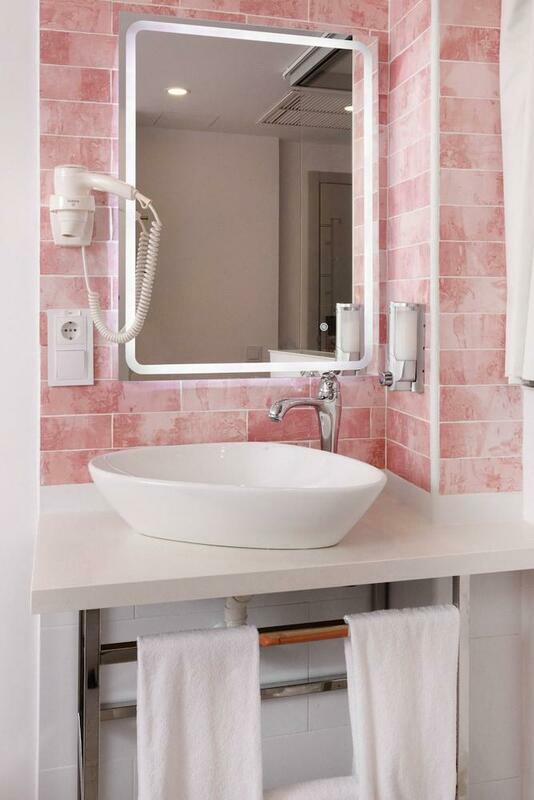 Air conditioning and central heating ensure that rooms maintain comfortable temperatures. Most units include a balcony with sea views, where guests can relax and linger a while. The rooms have a double bed and a sofa bed. Children's beds and extra beds can be requested for younger guests. A safe, a minibar and a desk are also available. An ironing set is provided for guests' convenience. A telephone, a TV and WiFi are provided as well. A hairdryer and a telephone are provided in the bathrooms, which include a shower. As a special feature, bathrooms are also stocked with cosmetic products and a selection of towels. Wheelchair-friendly rooms can be booked. The hotel has family rooms and non-smoking rooms.