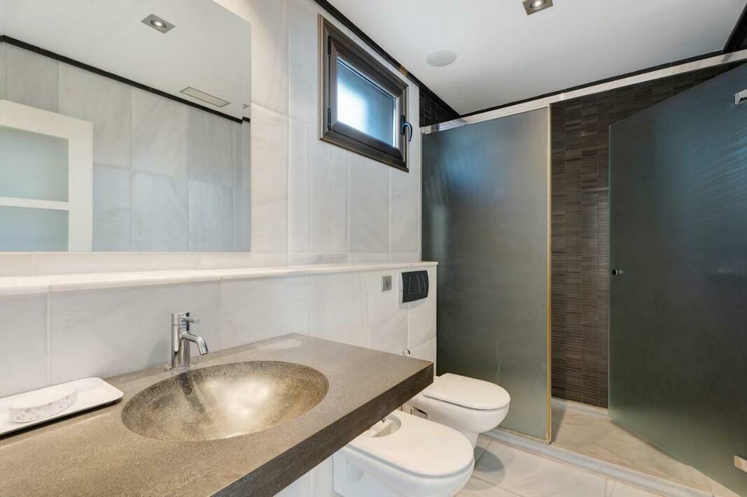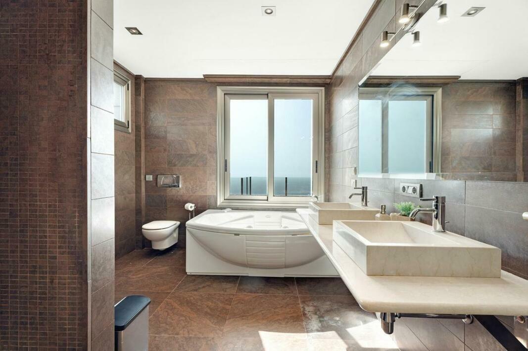 The spacious villa is equipped with 4 bedrooms, 6 bathrooms, bed linen, towels, a TV with streaming services, a fully equipped kitchen, and a terrace with sea views. For added privacy, the accommodation features a private entrance.