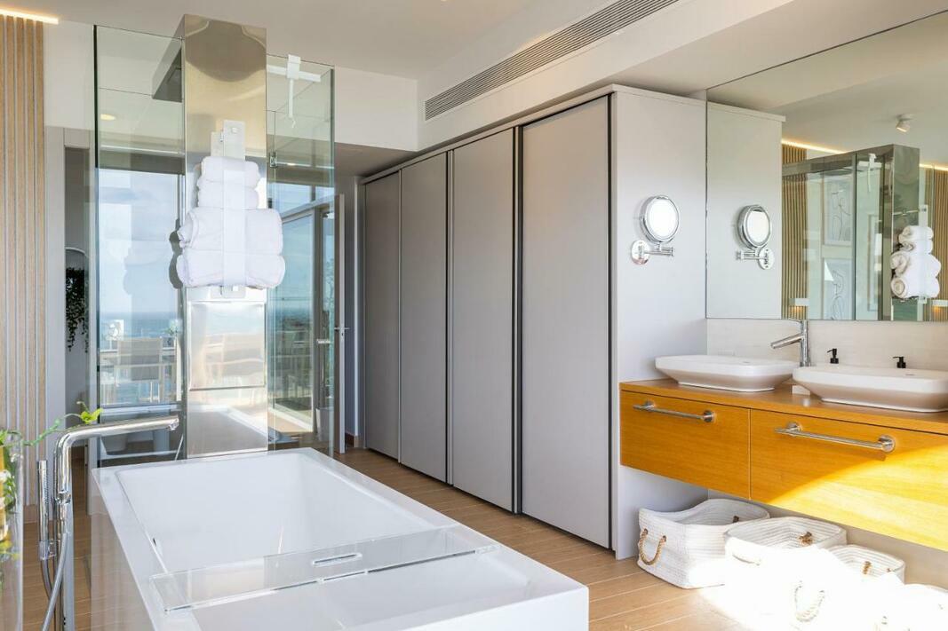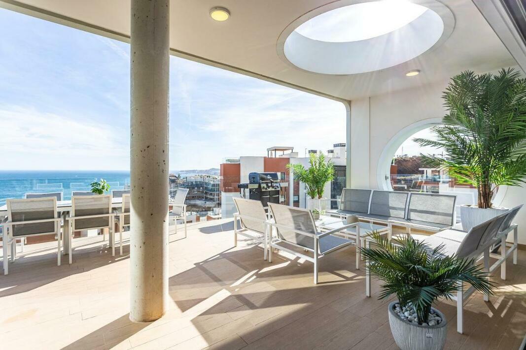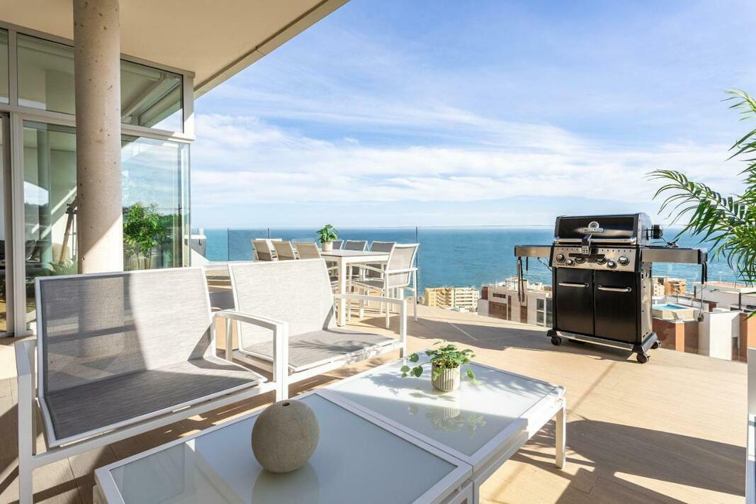 The spacious apartment has 3 bedrooms, 3 bathrooms, bed linen, towels, a flat-screen TV, a dining area, a fully equipped kitchen, and a terrace with sea views. The property has an outdoor dining area.